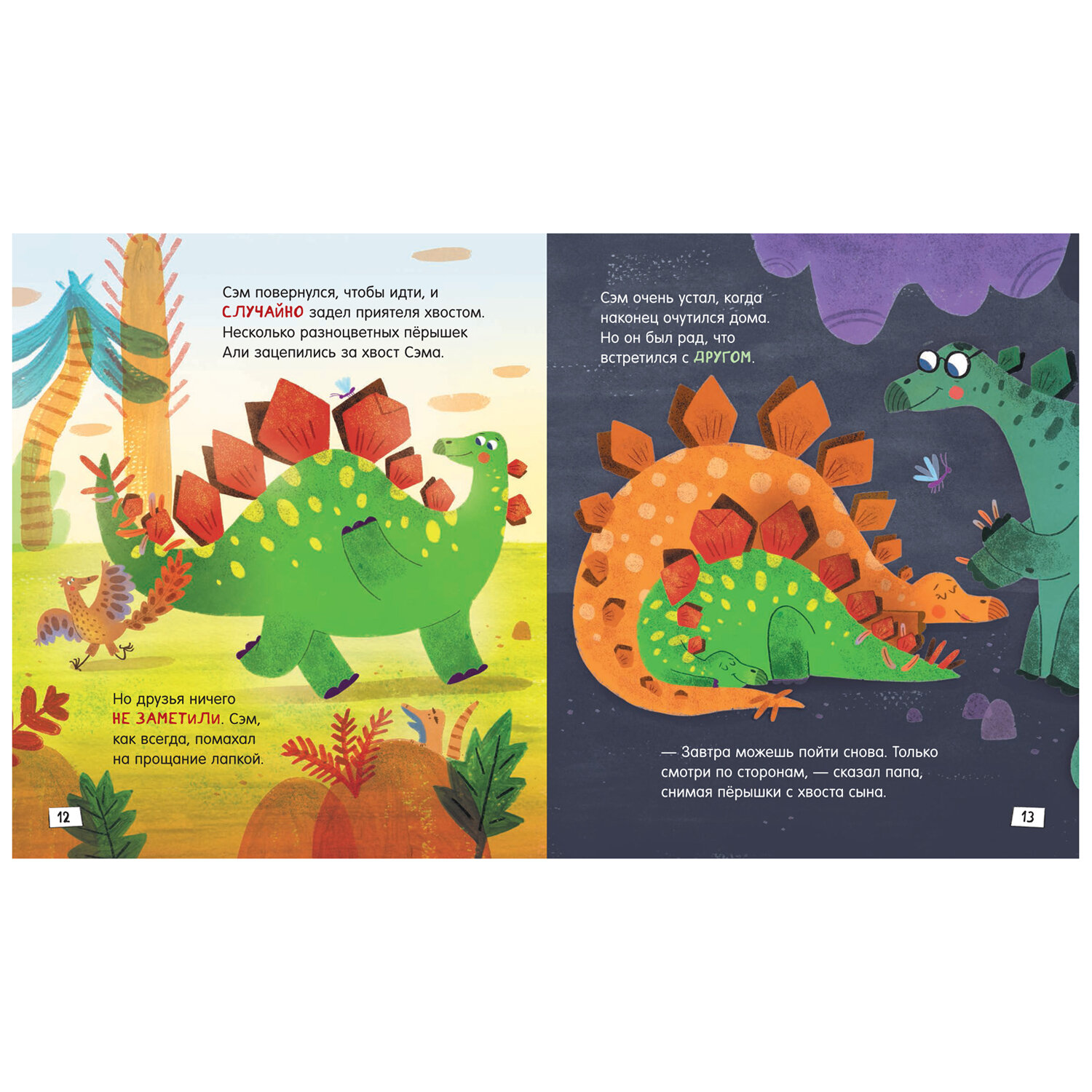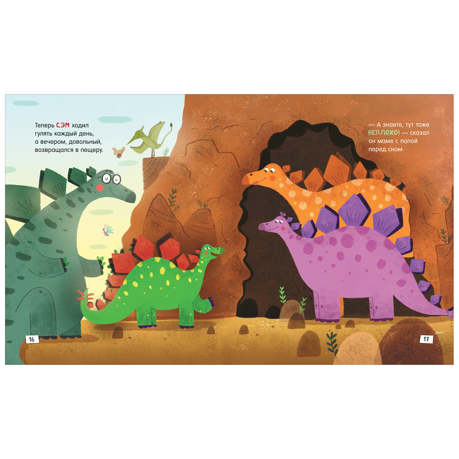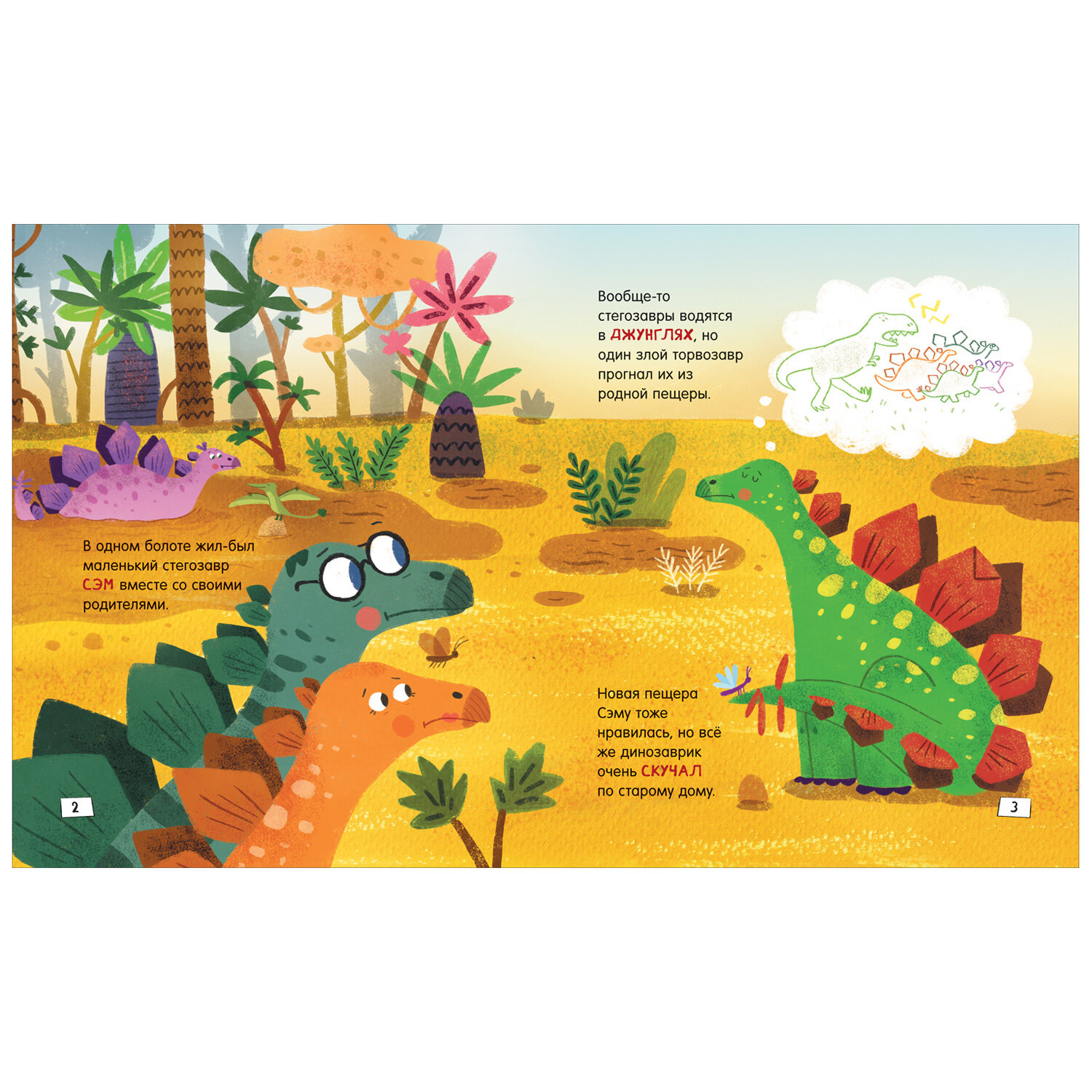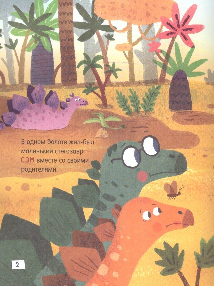Стегозавр Сэм недавно переехал в новый дом и очень скучает по старым друзьям. Как хорошо, что родители разрешили их навещать. Вот только прогулки Сэма не обходятся без сюрпризов
