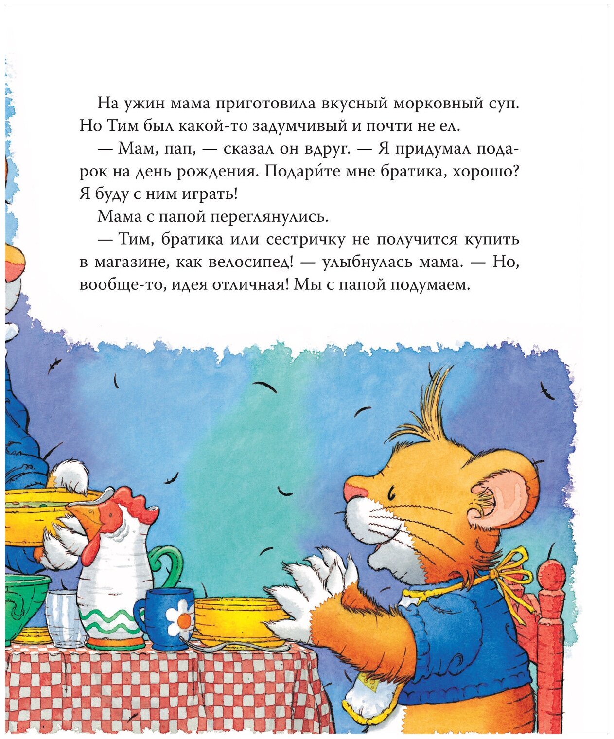 Когда друзья расходятся, Тиму даже повеселиться не с кем. Вот бы мама с папой подарили ему на день рождения братика! Малыша ведь можно многому научить. А еще всегда будет с кем поиграть... И вот однажды мама возвращается домой не одна. Но на руках у нее не братик, а сестричка! Теперь все задаривают малышку подарками и называют ее красавицей, а про Тима совсем забыли. Как тут не ревновать?