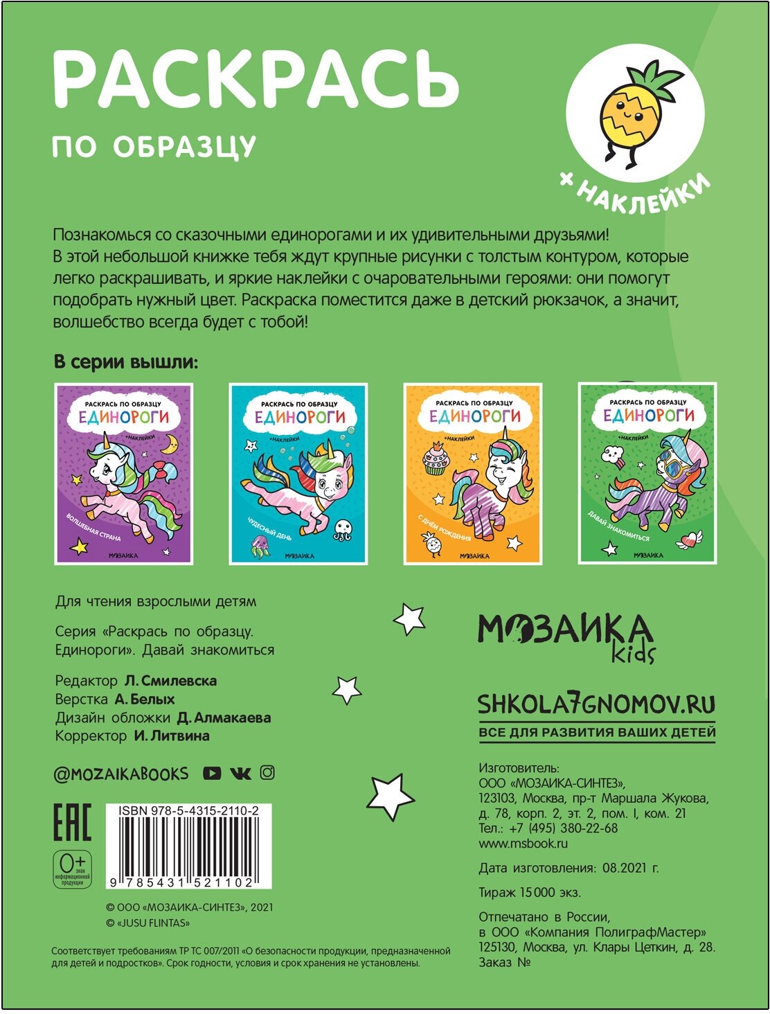Раскрась по образцу. Единороги. Давай знакомиться (Смилевска Л. (ред.)); МОЗАИКА kids, 2023