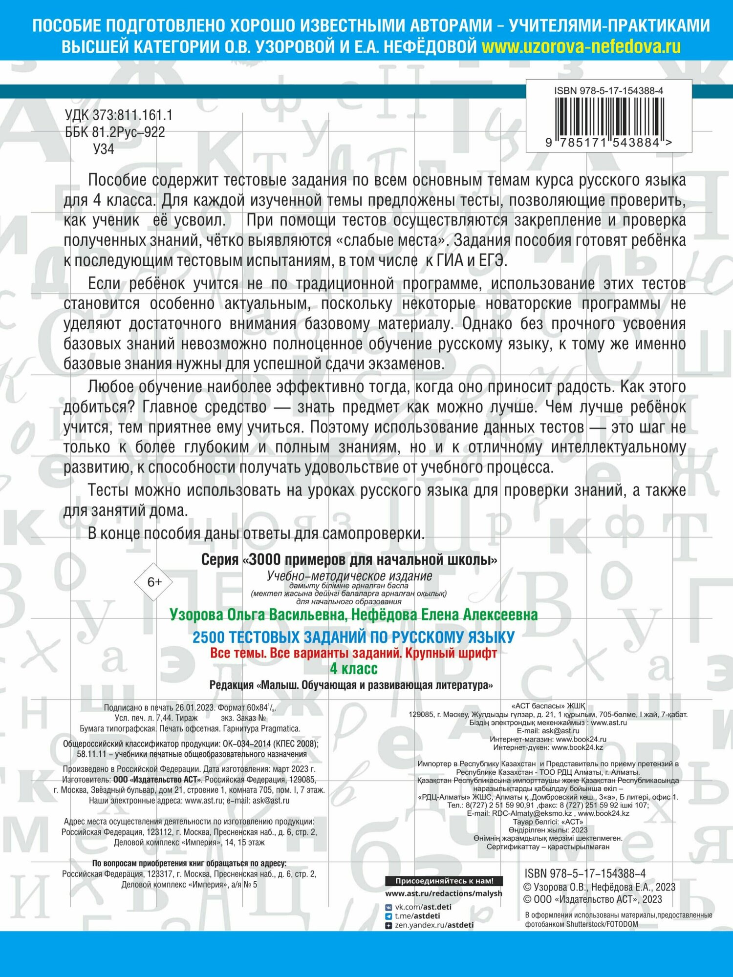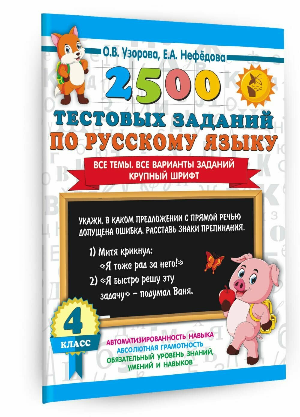 2500 тестовых заданий по русскому языку. 4 класс. Все темы. Все варианты заданий. Крупный шрифт (Елена Алексеевна Нефедова, Ольга Васильевна Узорова); АСТ, 2023