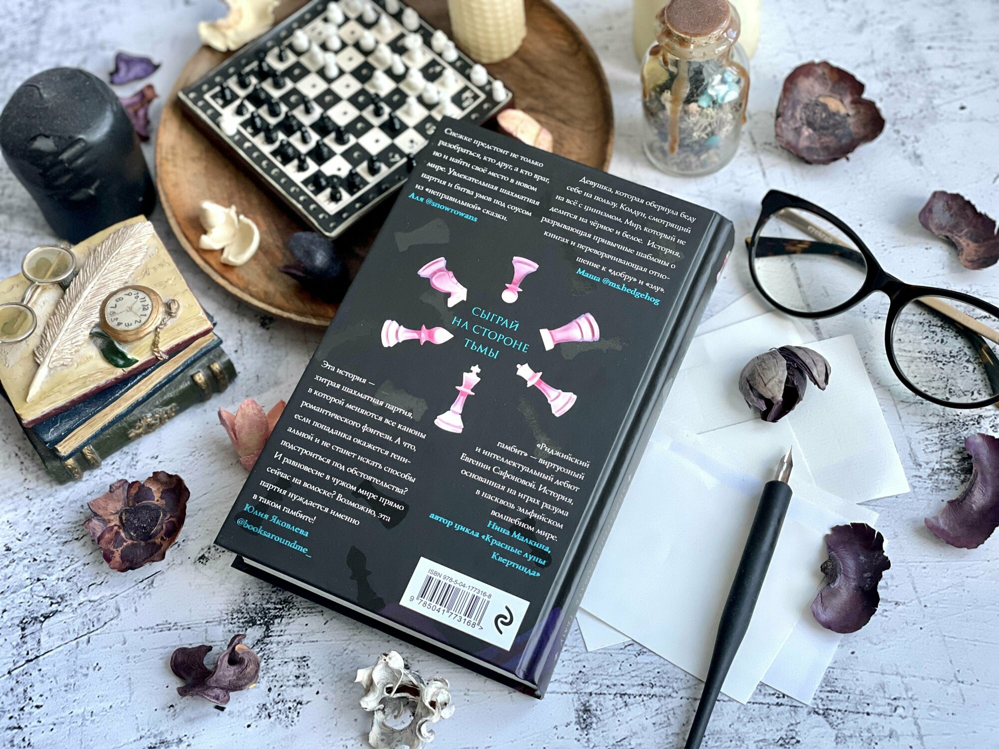 В переиздании очень красивая обложка, атмосферная такая. Шахматы(которые часто упоминаются в истории) тоже изображены на обратной стороне обложки.