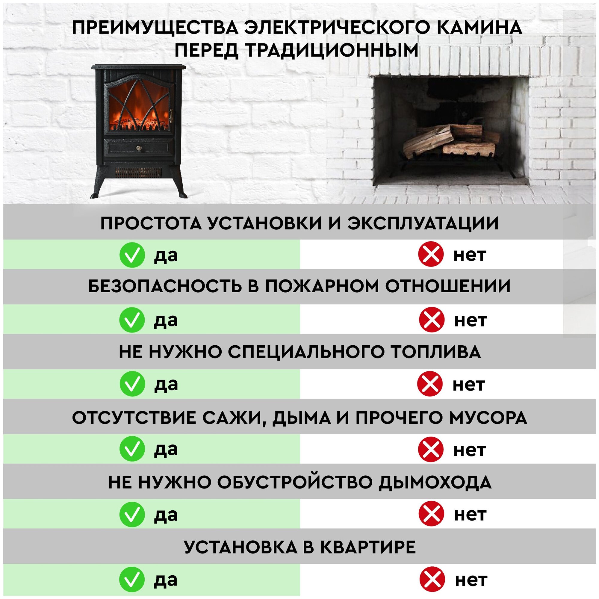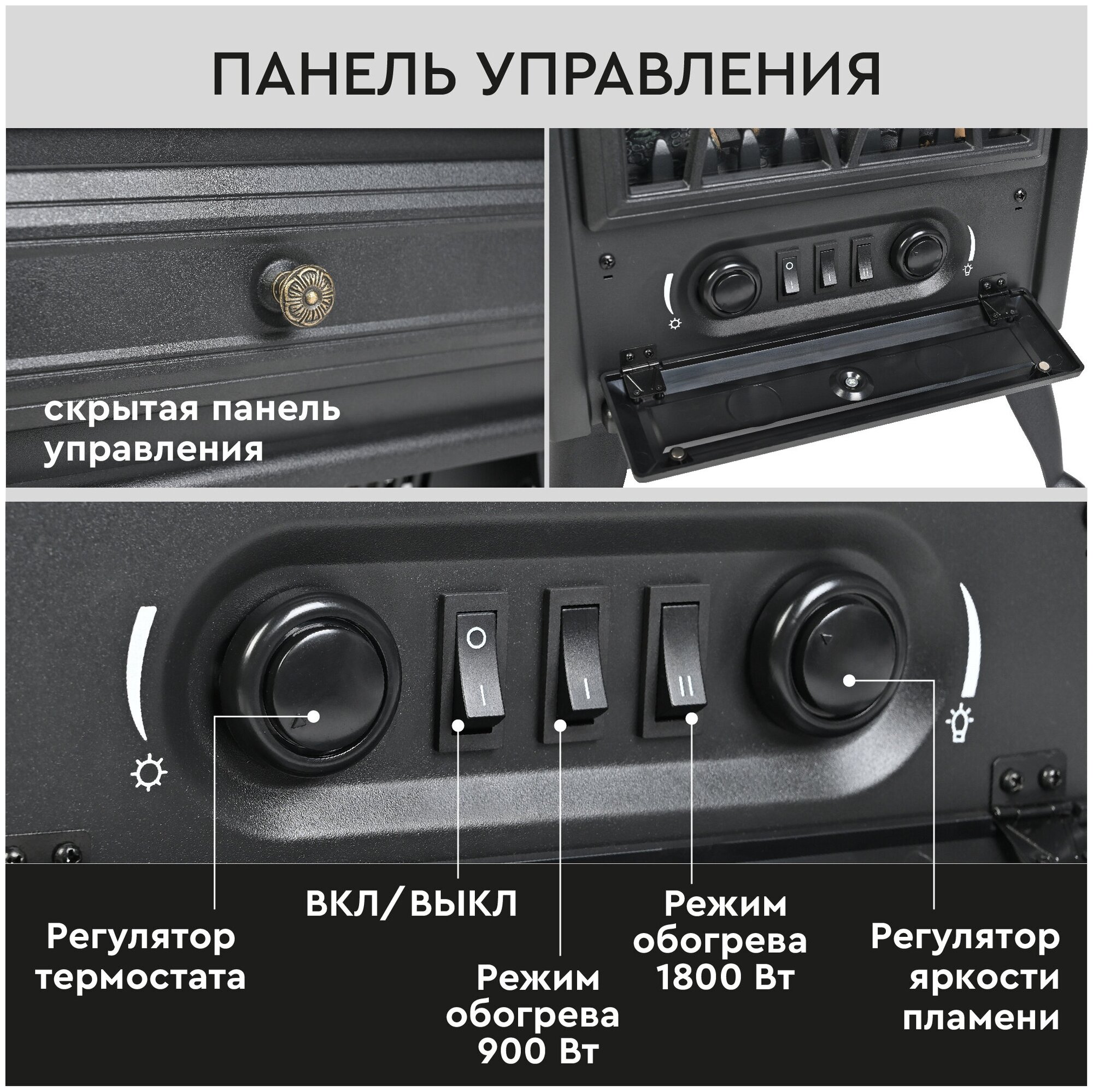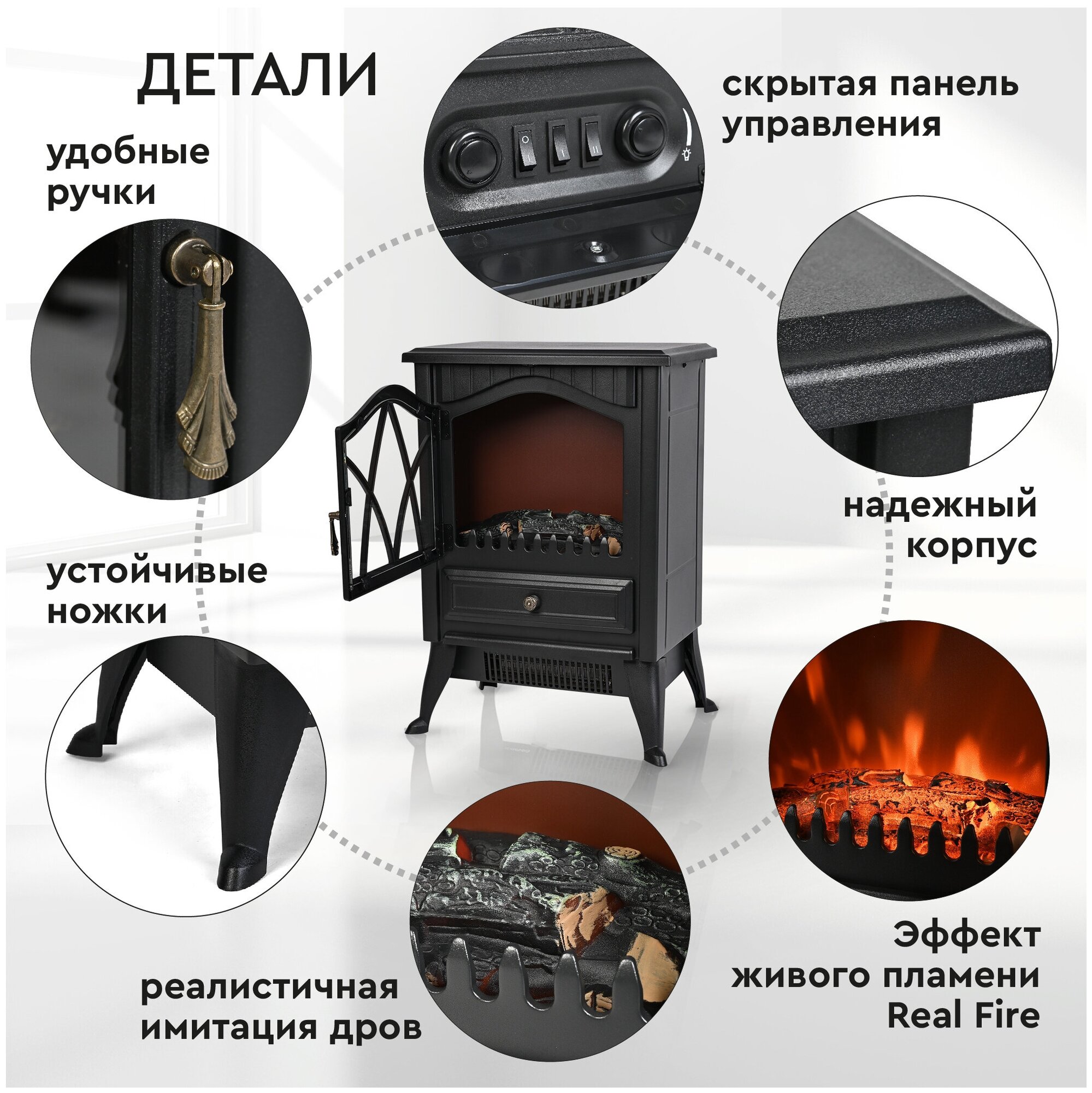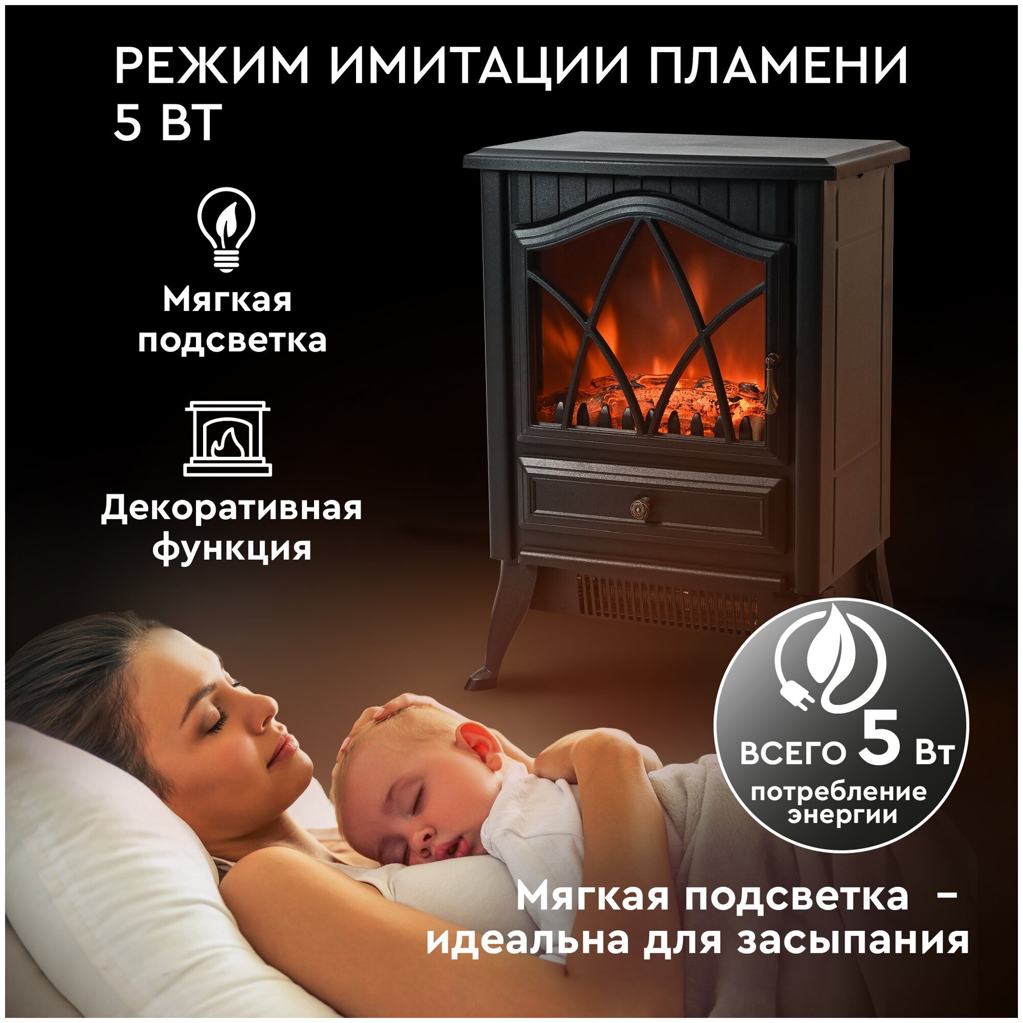 | Особенности | защита от перегрева; звуковой эффект горения пламени и потрескивания дров в очаге |