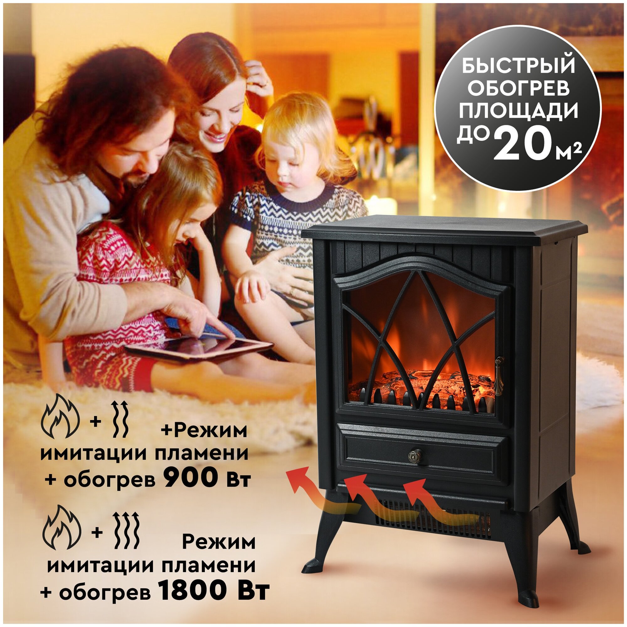 • Быстрый обогрев помещения до 20 кв.м.