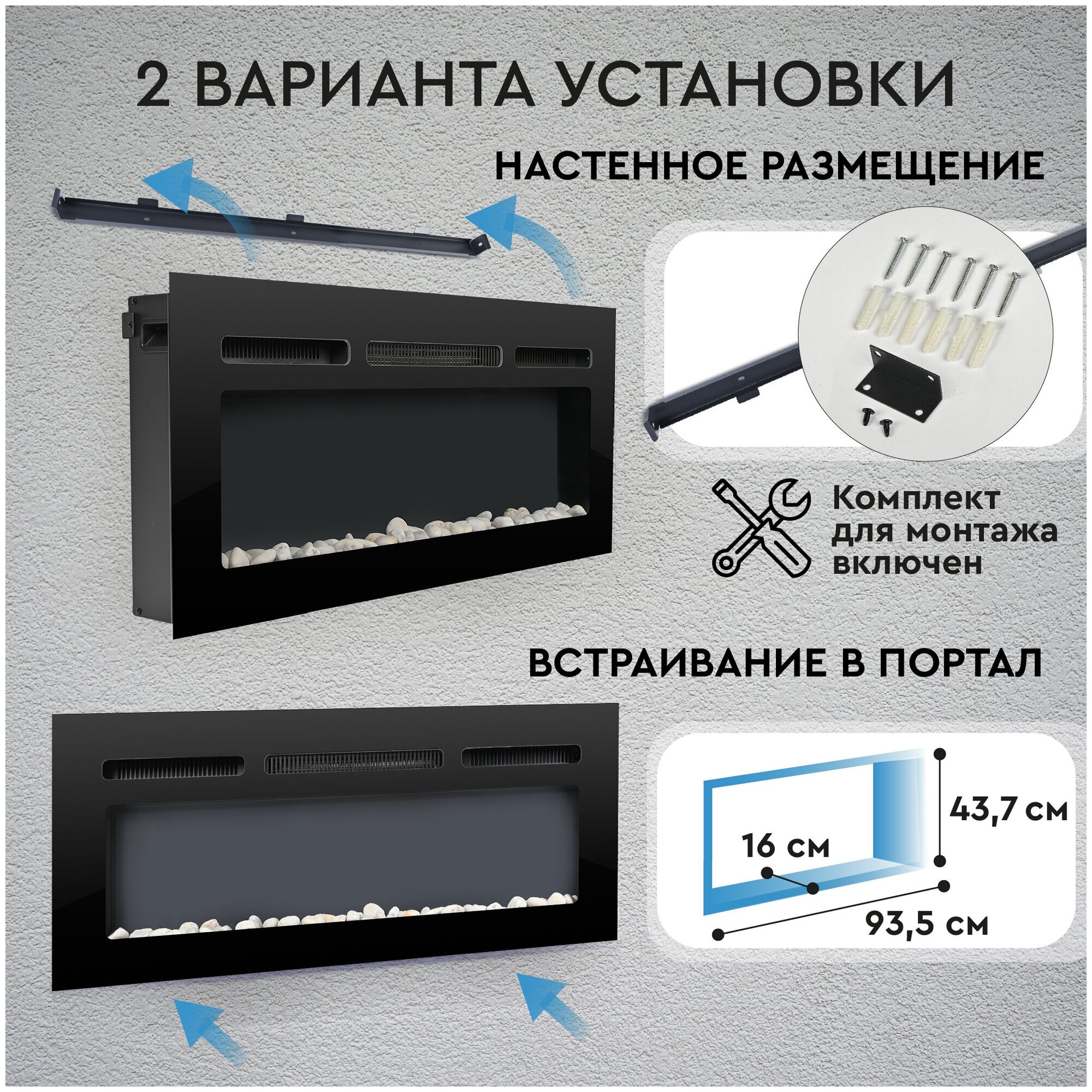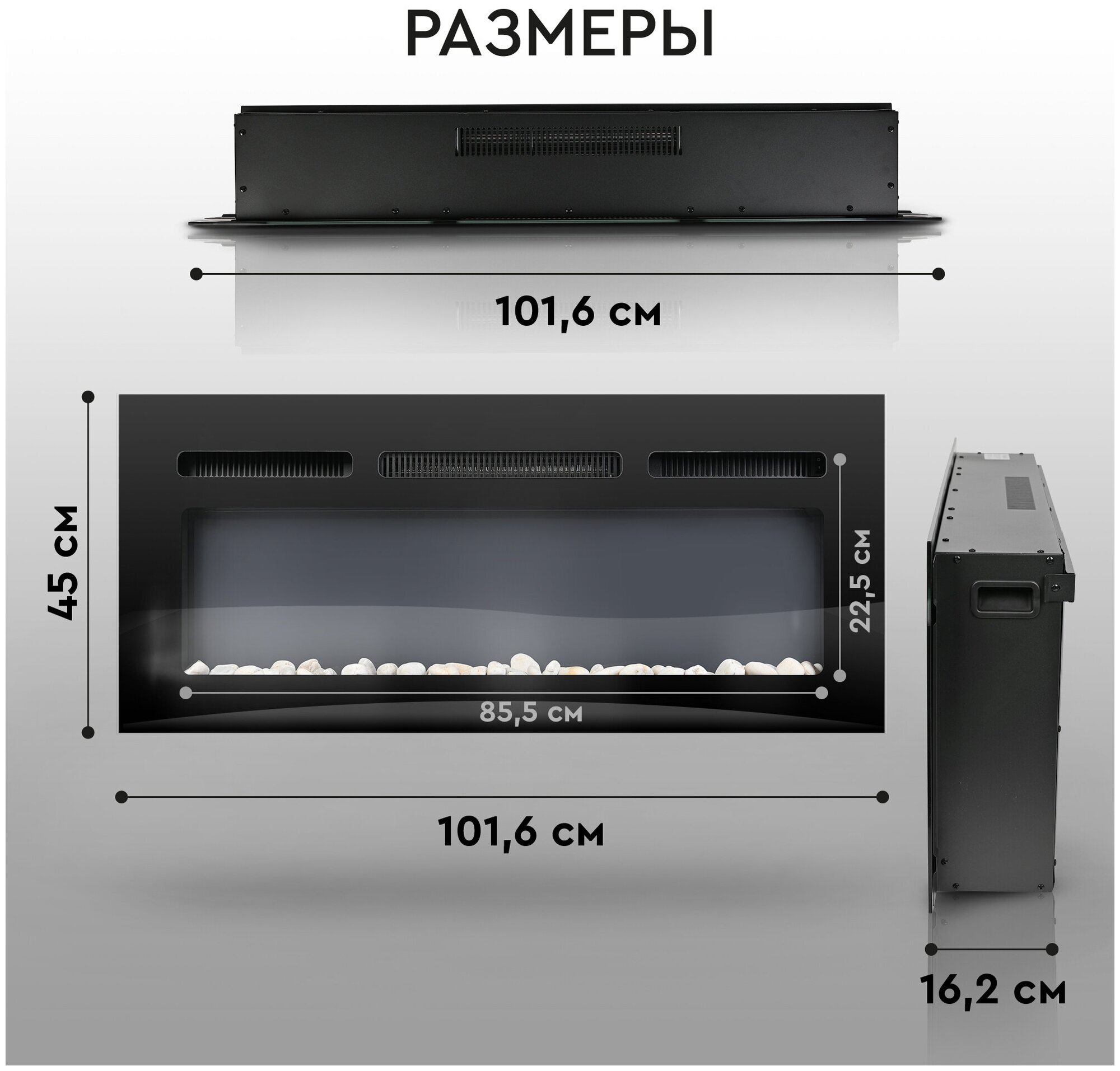 Электроочаг MULTICOLOR с диагональю 40 дюймов (размер камина 101,6x16,2x45,0 см) станет украшением любого интерьера. В комплекте с камином поставляются 2 вида декоративного топлива - белые камни и имитация дров. Меняйте топливо в зависимости от настроения и впечатления, которого хотите добиться.