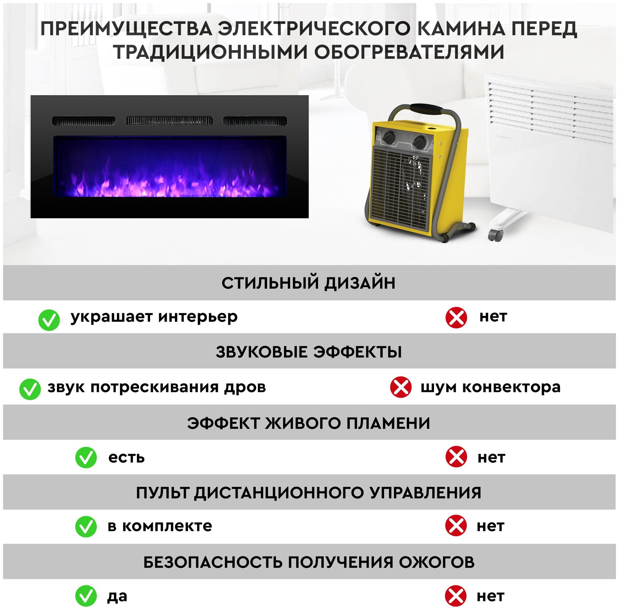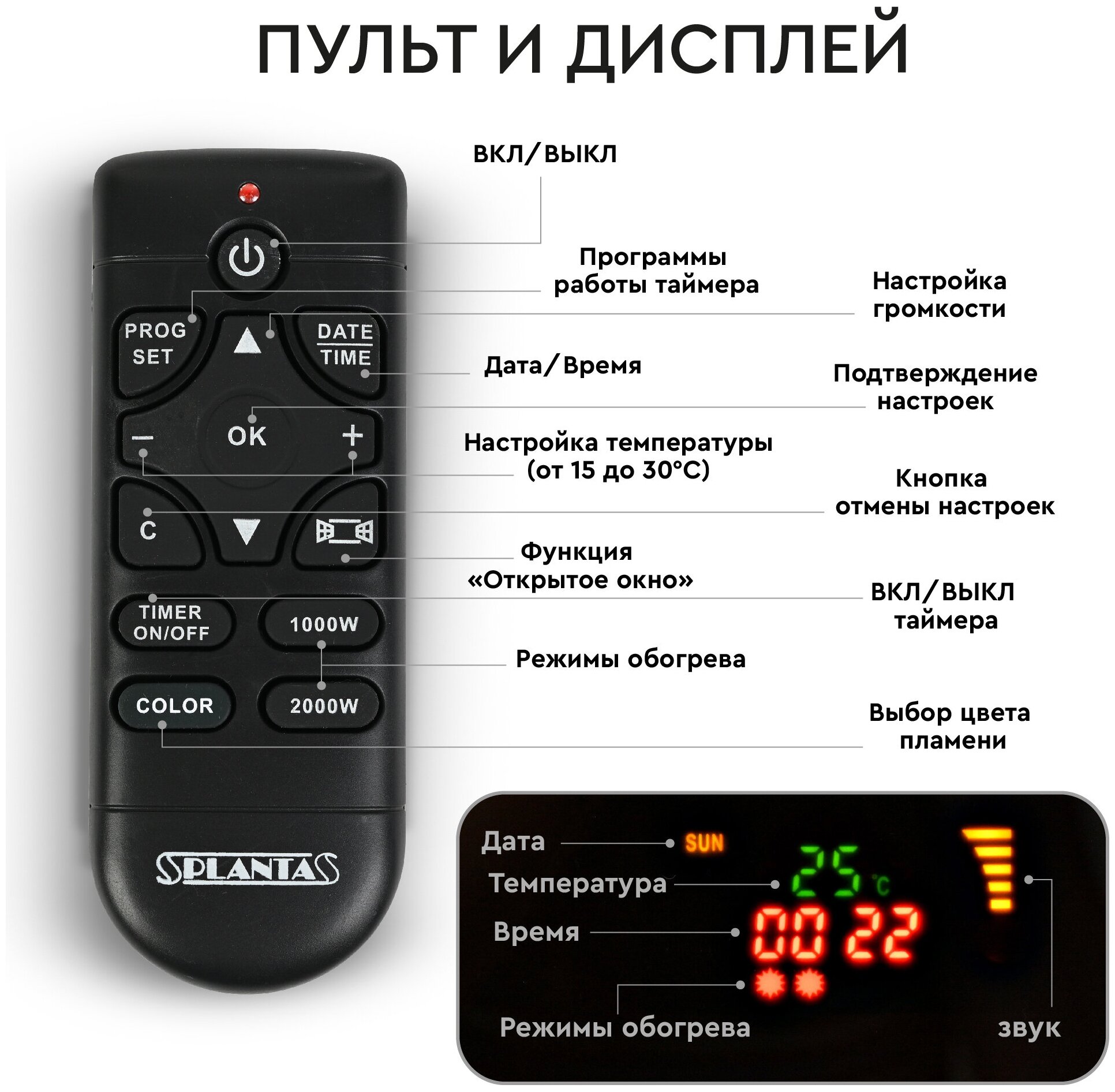 | Особенности | защита от перегрева; звуковой эффект горения пламени и потрескивания дров в очаге; пульт Д/У |