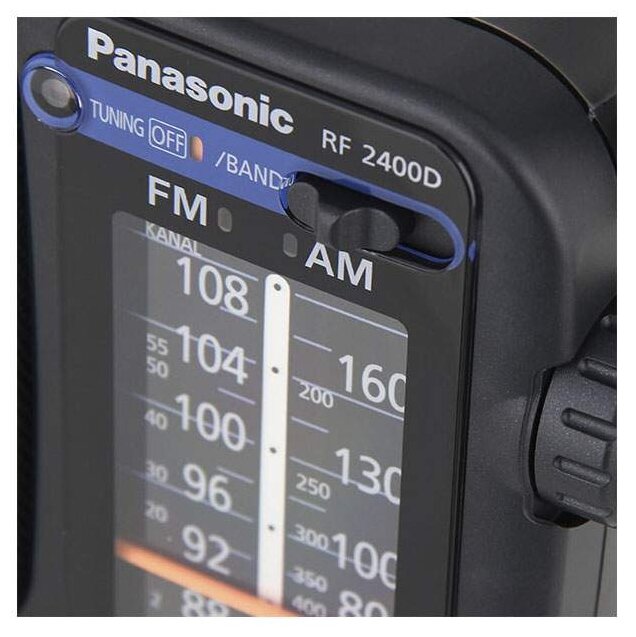 Panasonic RF-2400D, переносной радиоприемник с аналоговым радиотюнером FM/AM. В данной модели имеются выход для подключения наушников, антенна телескопического типа, а также отсоединяемый шнур питания. Для автономного питания в данную модель встроен отсек для четырех батареек типа АА (приобретаются отдельно). Удобная ручка для переноски и компактные размеры позволят брать это устройство куда угодно.