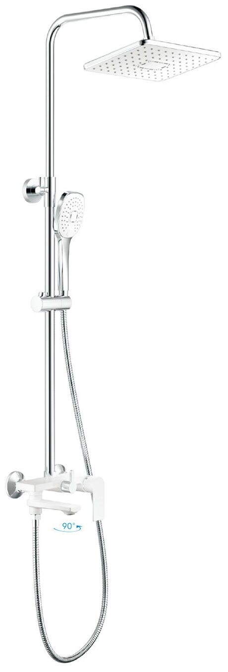 Душевая стойка Haiba HB23505-8, белый. Верхний душ, душевая штанга, держатель душевой лейки, ручной душ, смеситель, шланг. Душевая система Haiba. Изготовлена из высококачественной нержавеющей стали. Прекрасный тропический душ. Излив для наполнения ванны. Душевая штанга регулируется по высоте от 88,2 см до 153,2 см.
