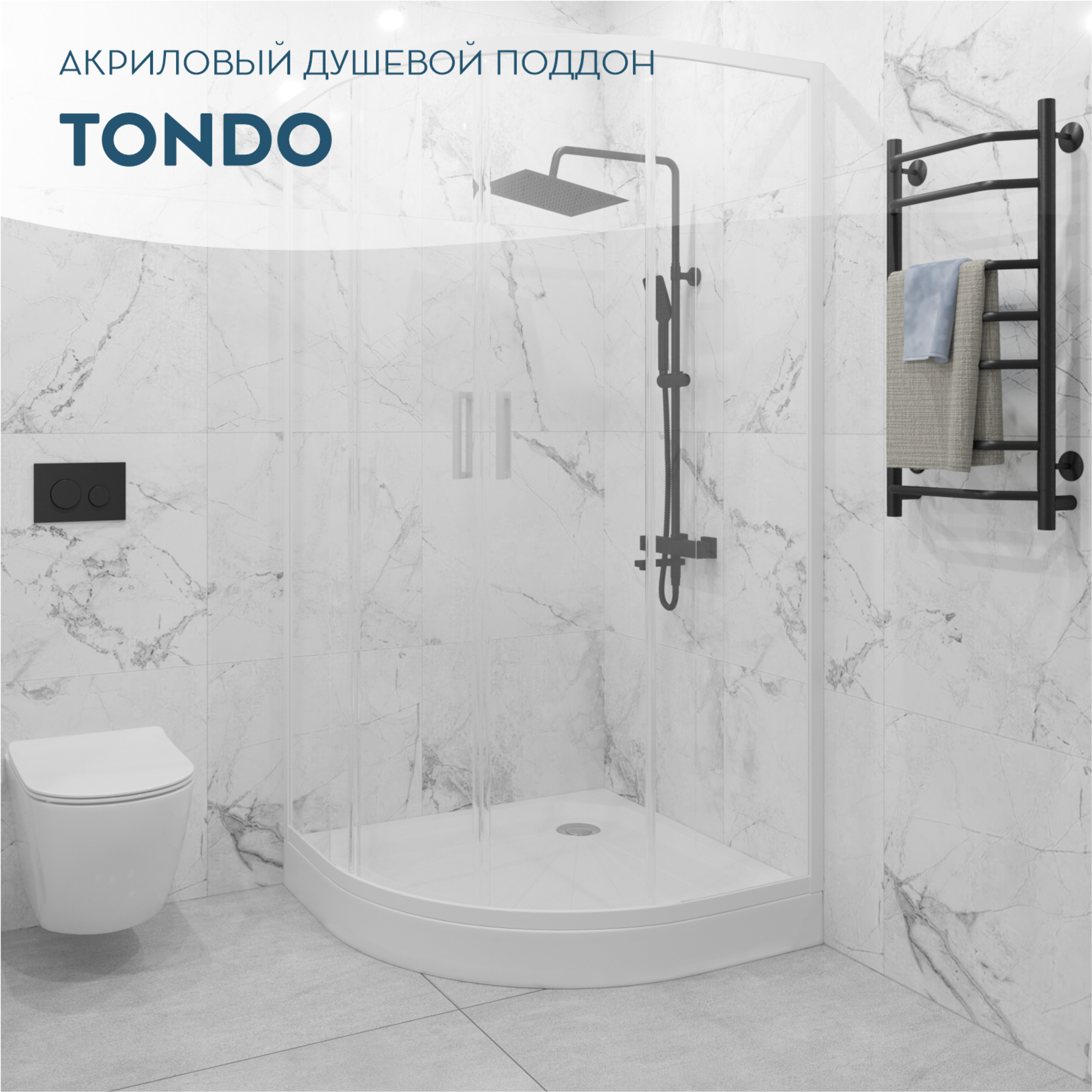 | Дополнительная информация | Поддон Tondo - экономное решение для душа. Поддон устанавливается на регулируемые по высоте ножки, а также имеет крепления к стене, благодаря чему надежно устанавливается на любую поверхность, и его не опрокинуть даже самому фактурному человеку. |