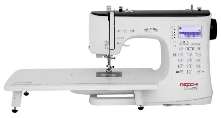 | Прочие особенности и свойства | 360 швейных операций включают в себя рабочие, трикотажные, оверлочные и декоративные строчки. Вышивка печатных и прописных букв английского алфавита, 50 строчек для шитья в технике квилтинг и пэчворк., У Necchi NC-205D самый мощный двигатель среди электронных швейных машин – 90 ВТ. Скорость шитья достигает до 1000 стежков в минуту., В машине имеется 50 видов строчек для шитья в технике квилтинг и пэчворк, помимо этого в комплектующие машины входят лапка и направляющая для квилтинга, а так же специальная пластина и расширительный столик., Машина с легкостью справляется с плотными и тяжелыми материалами благодаря электронному стабилизатору усилия прокола иглы., Машина может выполнять прямоугольные пуговичные петли для рубашек и блузок, с закруглением для брюк и юбок, с глазком для пиджаков и пальто., Система отключения транспортера ткани позволяет выполнять штопку, свободно-ходовую стежку и вышивку., При снятии части предметного столика вы можете воспользоваться оставшейся частью узкой платформы для обработки низа рукавов, брюк, манжет, рукавов, штанин, трубчатых изделий и всех необходимых круговых швов., Большой информационный дисплей, на котором изображены все настройки, поможет освоить работу на машине не только швейным знатокам, но и новичкам., Горизонтальный металлический челнок с системой быстрой заправки нити QBT. После заправки нижней нити вы можете сразу начать шить без подъема нижней нити, как у обычных швейных машин., Дополнительный стержень в комплекте для второй катушки позволяет легко менять катушки для намотки шпульки и использовать двойную иглу., Яркая и равномерная LED-подсветка обеспечивает максимальный комфорт в работе., Позволяет в одно касание менять положение иглы в зависимости от ваших задач. Выберите положение остановки иглы, либо в максимально верхнем положении, либо в нижнем положении в ткани., При нажатии на клавишу машина обрезает верхнюю и нижнюю нить, оставляя концы нитей необходимой длины, чтобы строчка не распускалась., Выбирайте комфортную для вас скорость шитья. Для более точного контроля установите предел, выше которого машина шить не будет., Для шитья без педали, например во время вышивки петель или выполнения декоративных строчек используйте клавишу СТАРТ/СТОП., Чтобы предотвратить распускание строчки используйте клавишу закрепки в начале и в конце строчки., Машина работает со всеми типами тканей. Для стандартных тканей средней плотности не требуется дополнительных настроек. При шитье тонких тканей следует ослабить давление прижимной лапки, чтобы строчка не сборила., Для работы с плотными тканями необходимо увеличить давление прижимной лапки, чтобы ткань продвигалась и строчка ложилась ровными стежками., Автоматический нитевдеватель значительно упрощает и ускоряет процесс заправки верхней нити., Теперь любые типы нитей, которые распускаются и бахромятся легко и быстро заправить в иглу.Надежность машины зависит от прочности каркаса., Металлическая станина дает прочное основание, к которому крепятся все составляющие.Лапки универсальная, лапка для пришивания молнии, электронная лапка для выметывания петли,шагающая лапка, лапка для атласной строчки, лапка для пришивания пуговицы, лапка для оверлочной строчки, лапка для вшивания шнура, лапка для квилтинга, лап