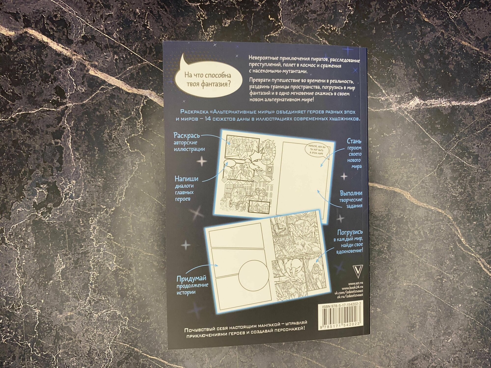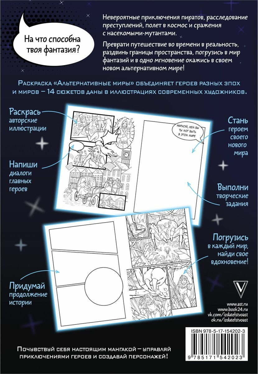 Листаем книгу_"Альтернативные миры: раскраска в стиле манга. Придумай и раскрась историю"