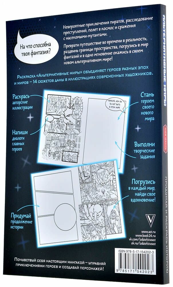 Альтернативные миры. В стиле манга. Придумай и раскрась историю (Дятлова Екатерина); ООО "Издательство Астрель", 2023
