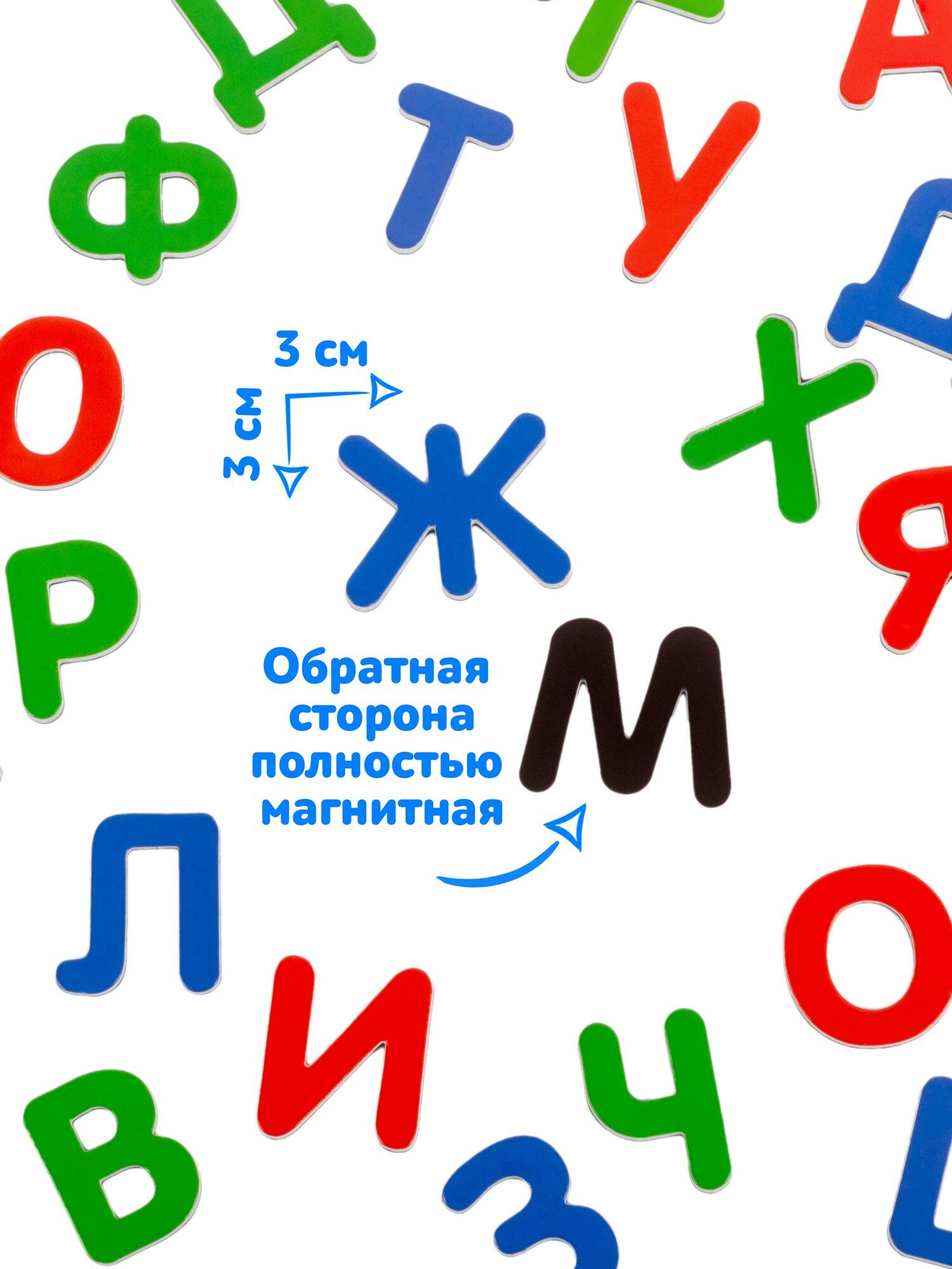 В комплекте: 70 фигурных магнитных букв (обратная сторона полностью магнитная).