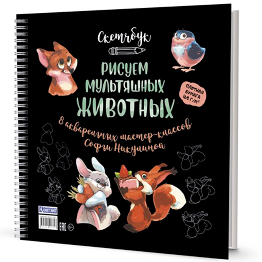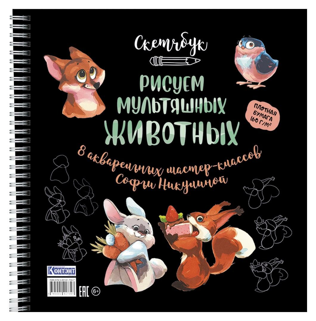 Скетчбук на пружине Рисуем мультяшных животных (разные звери) (Никулина С.); Контэнт, 2023