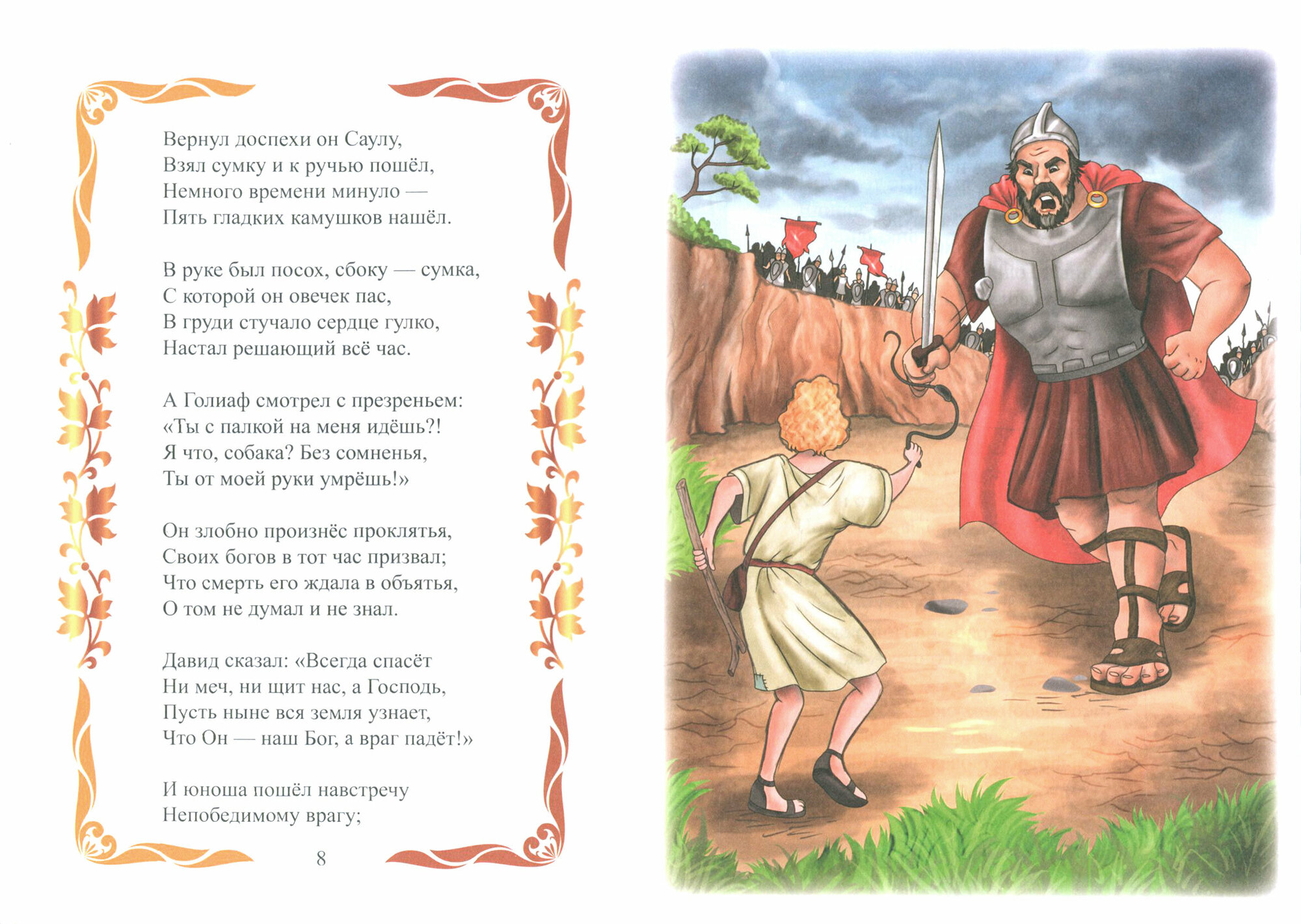 Младший сын Еессея, пастушок Давид, был помазан пророком Самуилом на царство. Бог помог юноше одолеть грозного врага: великана Голиафа. Израильский царь Саул увидел соперника в бывшем пастушке и решил его убить. Бог был с Давидом, хранил его и защищал. Библия повествует не только о доблестных делах Давида, но и об его ошибках...