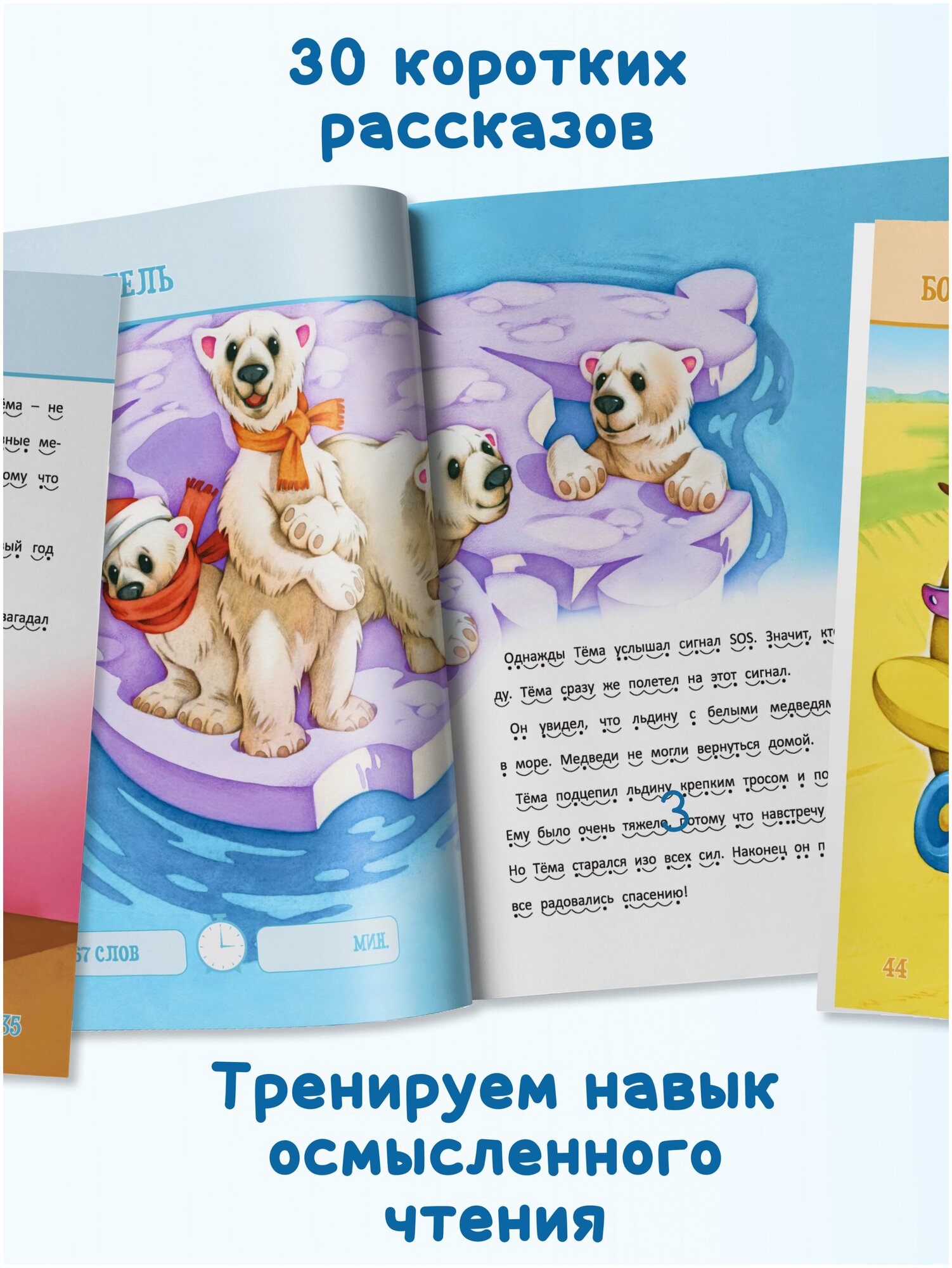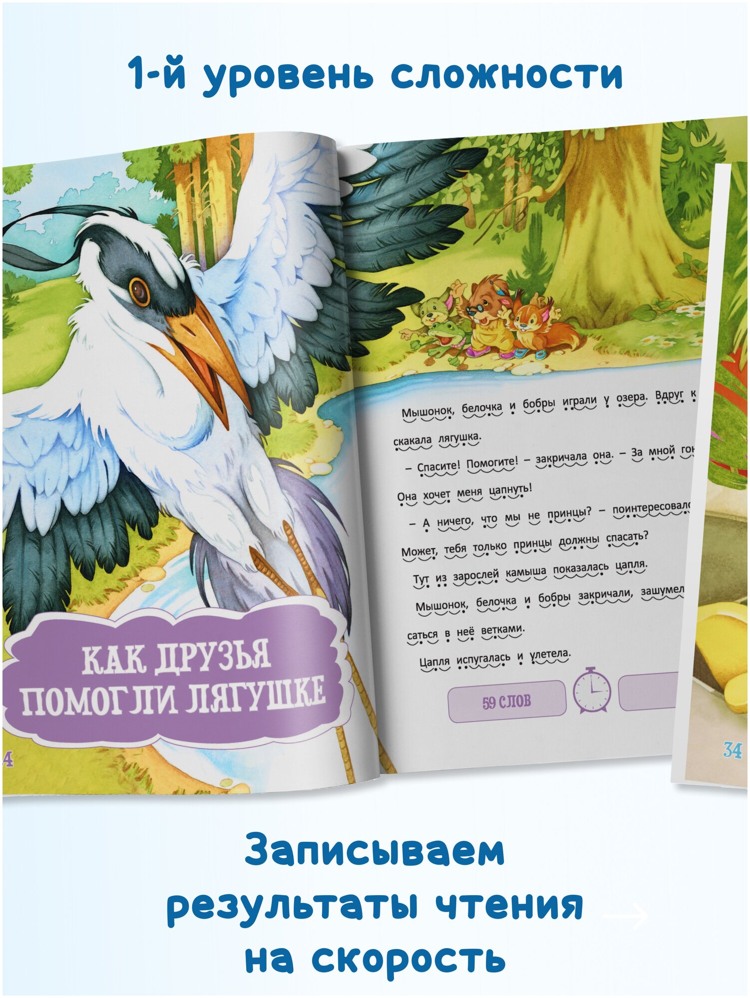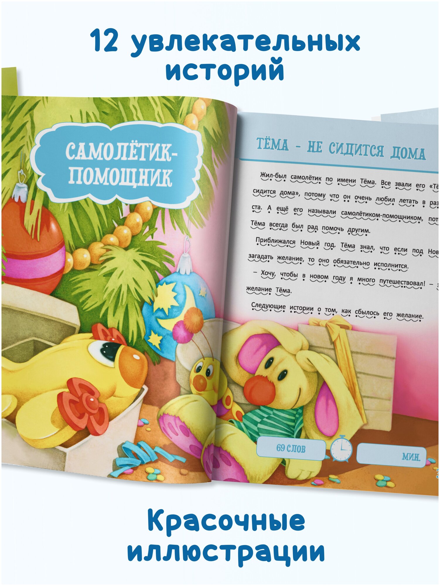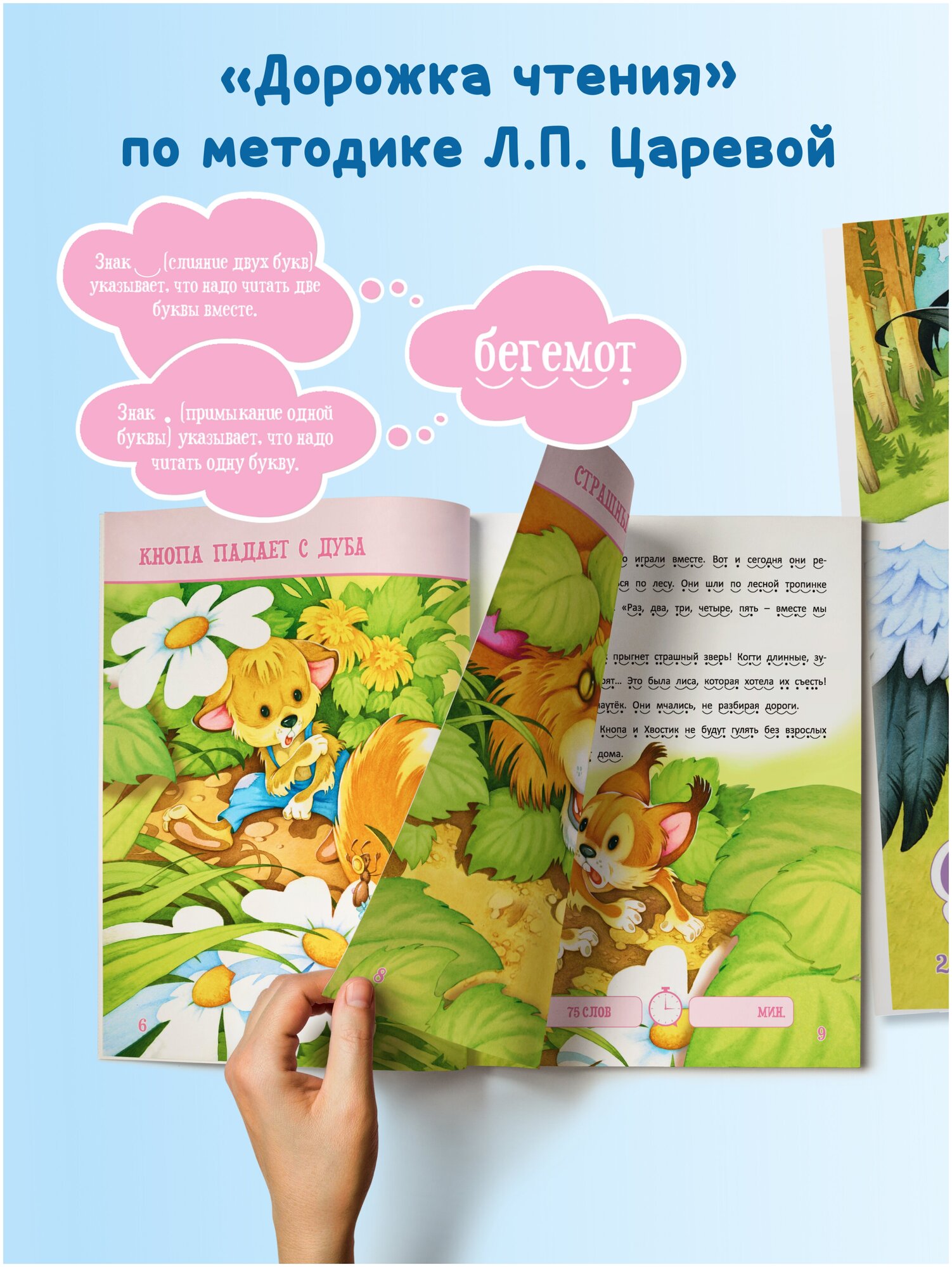 Данная книга предназначена детям, уже освоившим азбуку. Текст набран крупным, удобным для детского восприятия шрифтом с использованием "дорожки чтения" по методике Л. П. Царевой. Для формирования навыка беглого и осмысленного чтения слова текста не разбиваются на слоги, а раз-мечаются специальными символами, создающими "дорожку чтения". Переводя указку по "дорожке", ребенок читает, например, слово "бегемот".
