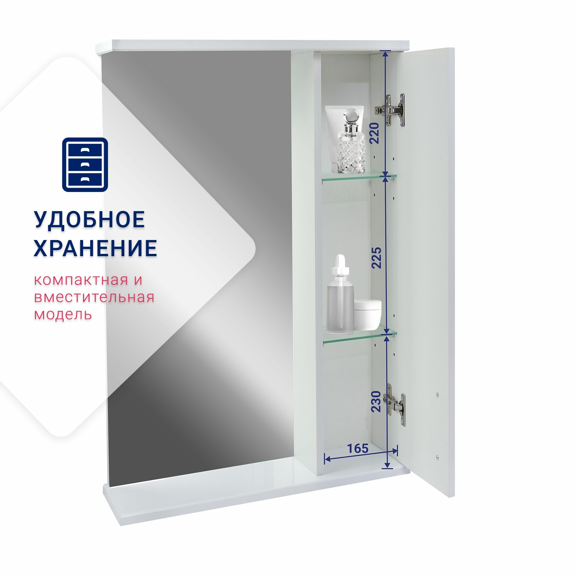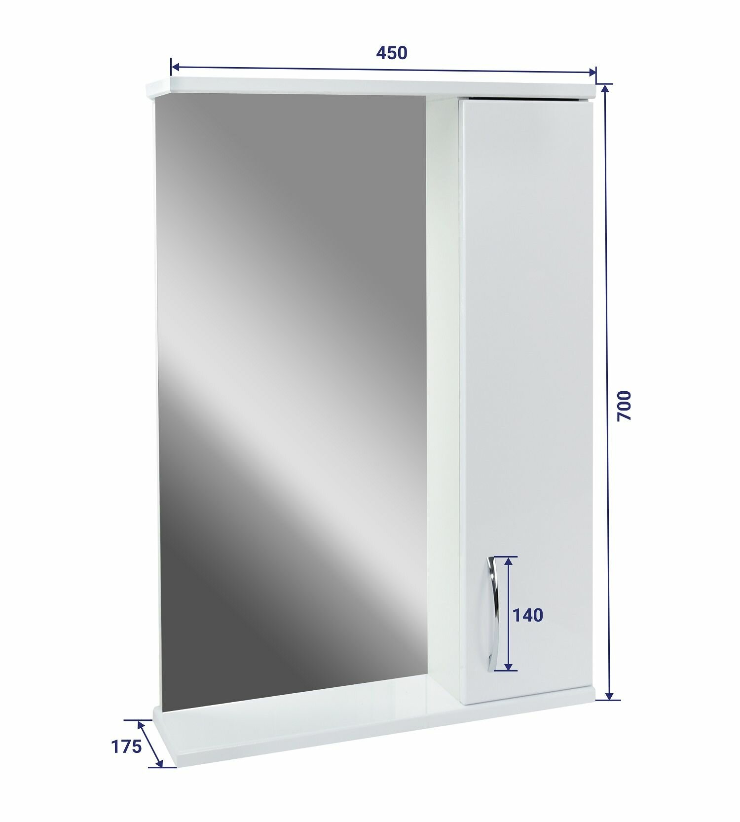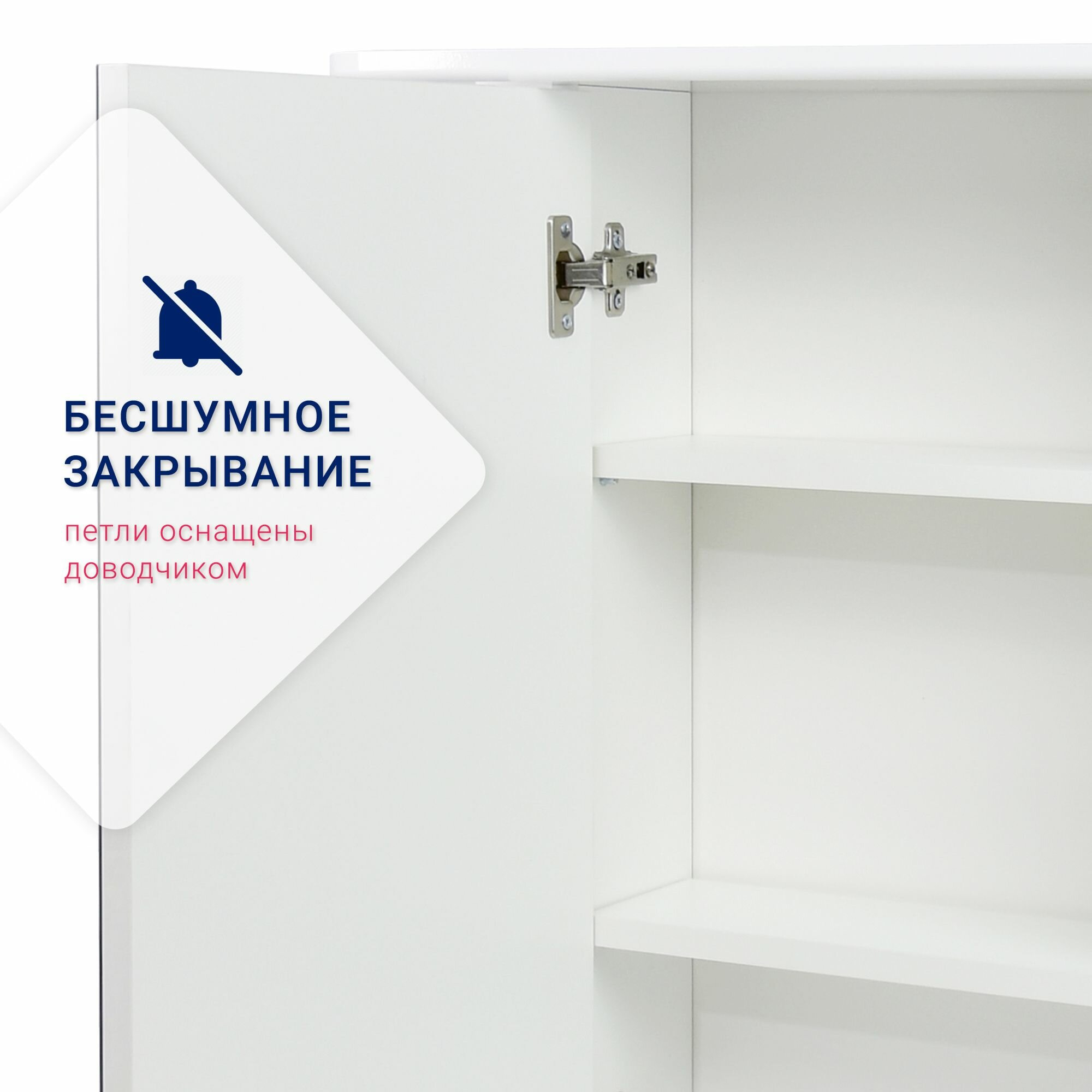 Зеркальный шкаф для ванной Doratiz Эко 45 2712.532. Белый, правый позволяет обустроить ванную комнату без значительных затрат, но при этом сохраняется удобство и практичность в использовании данной мебели. Этот компактный, но при этом достаточно вместительный зеркальный шкаф прекрасно впишется в любой интерьер ванной комнаты. За фасадом навесного шкафа находятся 2 полки для удобной организации хранения косметических средств и аксессуаров. Плавное и бесшумное закрывание дверцы обеспечивают петли с доводчиком. Фасады мебели для ванной комнаты DORATIZ изготавливаются из качественного и высокоплотного влагостойкого МДФ, обтянутого пленкой с высокой степенью глянца. Корпус из влагостойкого ЛДСП с ПВХ-кромкой. Обработка зеркального полотна предназначена для использования во влажных помещениях.