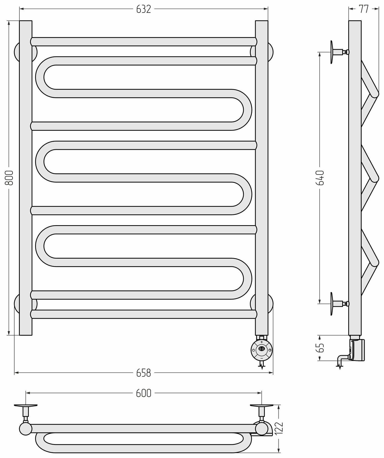 Полотенцесушитель электрический Стилье - Изящная модель мощностью 300W с изогнутыми, объёмными перемычками- Оборудован новым блоком управления с дисплеем. Невероятно простой, интуитивный интерфейс позволяет быстро выбрать подходящий режим работы- Полезная функция для тех, у кого есть дети – блокировка элементов управления. Защита включается одновременным нажатием двух кнопок в течение трёх секунд- Если вы планируете установить полотенцесушитель в загородном доме – можете быть уверены в долговечной работе нагревательного элемента даже после зимнего периода, ведь блок управления имеет встроенную защиту от замерзания