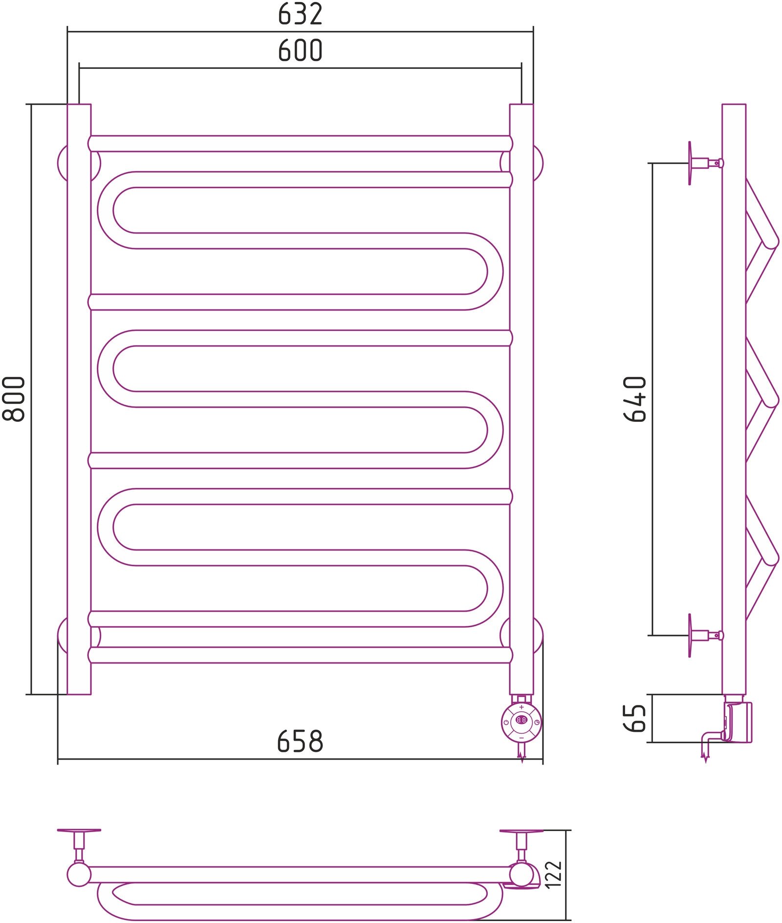 Полотенцесушитель электрический Стилье ТП 80х60 (1+3+1) ПZП 21 матовый белый Формат 22