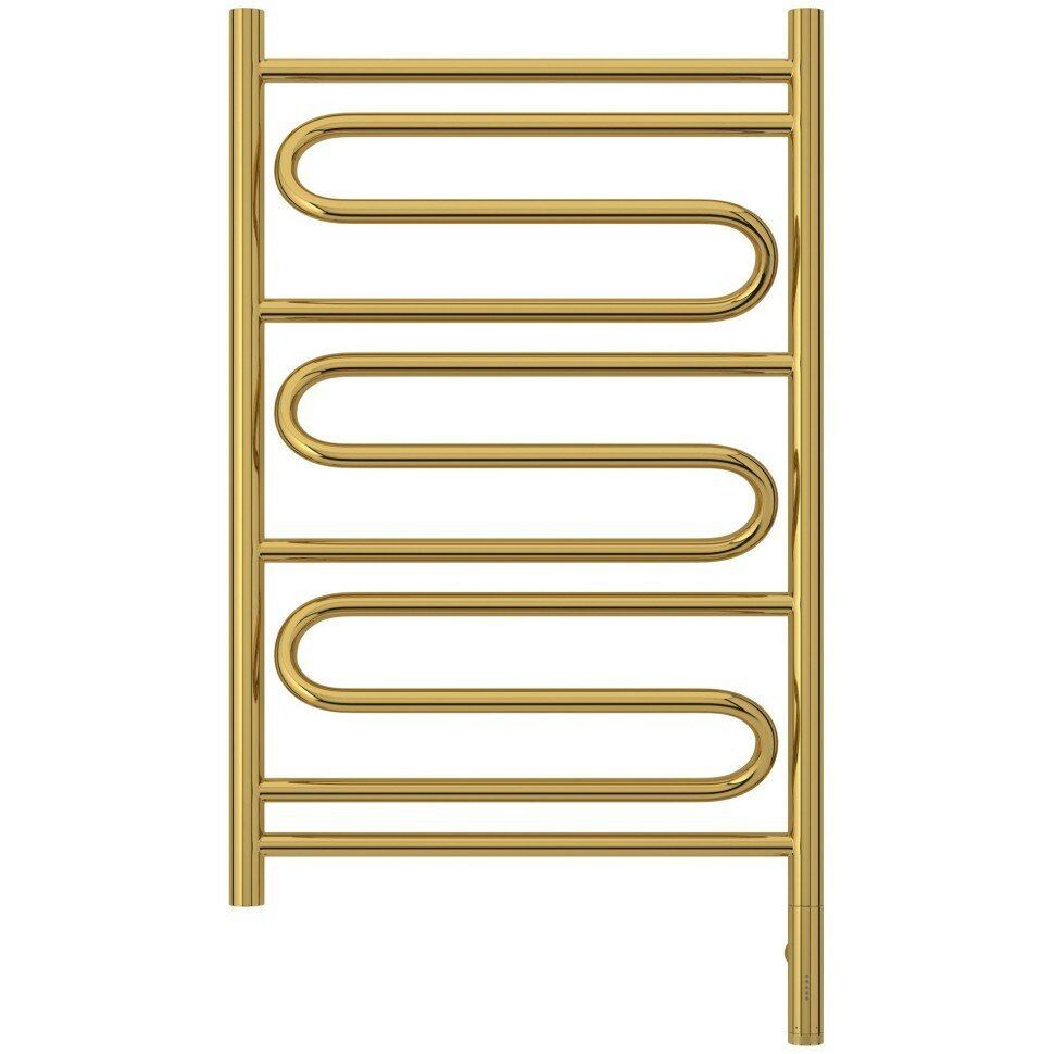Электрический полотенцесушитель 50x80 см Сунержа Элегия 3.0 - стильное и технологичное решение для сушки вещей и обогрева помещения. У этого полотенцесушитя форма, а и изготовлен он из высококачественной нержавеющей стали. золото цвет станет интересным решением в вашей ванной комнате. Терморегулятор, которым оснащен полотенцесушитель обеспечивает возможность установить степень нагрева. Кнопка включения у данной модели отсутствует - просто подключите вилку в розетку и он готов к работе! Электрический нагревательный элемент обеспечивает комфортную температуру в помещение, а мощность 300 Вт гарантирует быстрый нагрев.