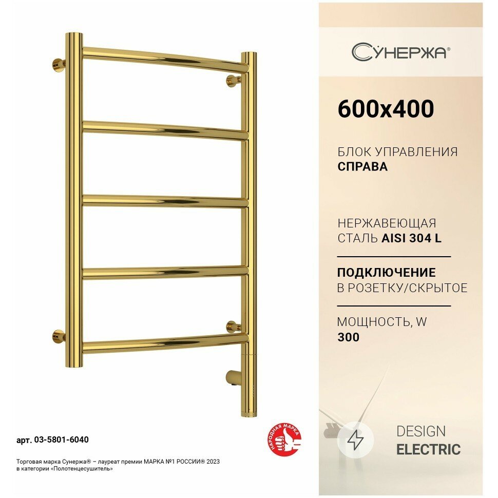 Полотенцесушитель электрический Сунержа Галант 3.0 60х40 МЭМ правый золото (03-5801-6040)