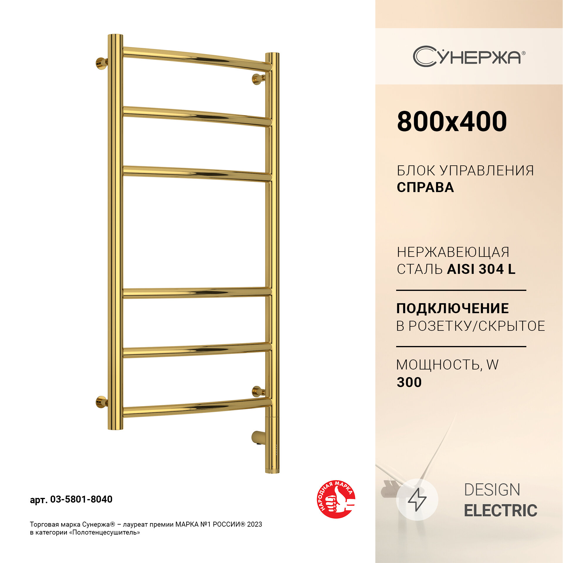 Полотенцесушитель электрический Сунержа Галант 3.0 80х40 МЭМ правый золото (03-5801-8040)