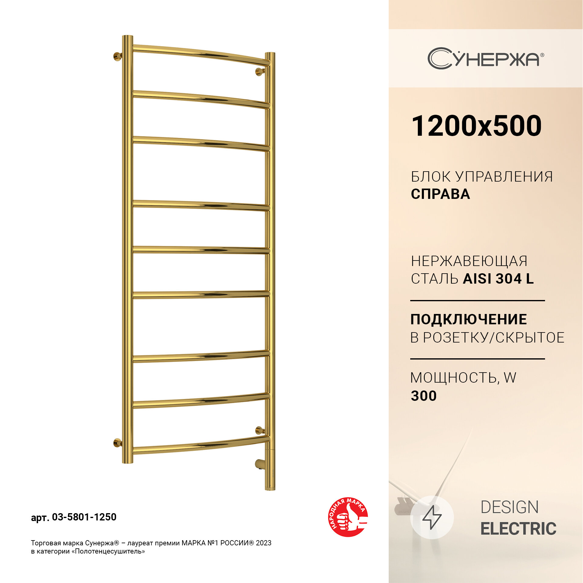 Полотенцесушитель электрический Сунержа Галант 3.0 120х50 МЭМ правый золото (03-5801-1250)