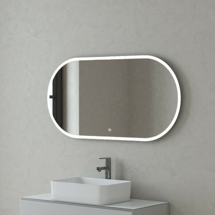 LED-подсветка, сенсорный выключатель с регулировкой яркости, то есть существует возможность регулировки освещенности (делать подсветку ярче или темнее). Класс защиты: IP67. Класс энергетической эффективности: A++. Серебряное зеркало, стекло высшего качества M1. AC/DC трансформатор. Зеркало может быть установлено как горизонтально, так и вертикально путем изменения положения крепежей.