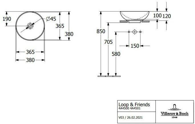 Родина марки Villeroy & Boch – Германия, все раковины производятся с точным соблюдением соответствующих стандартов качества. Накладная раковина Villeroy & Boch Loop & friends 4A450001 незаменимый предмет сантехники в традиционном понимании ванной комнаты.