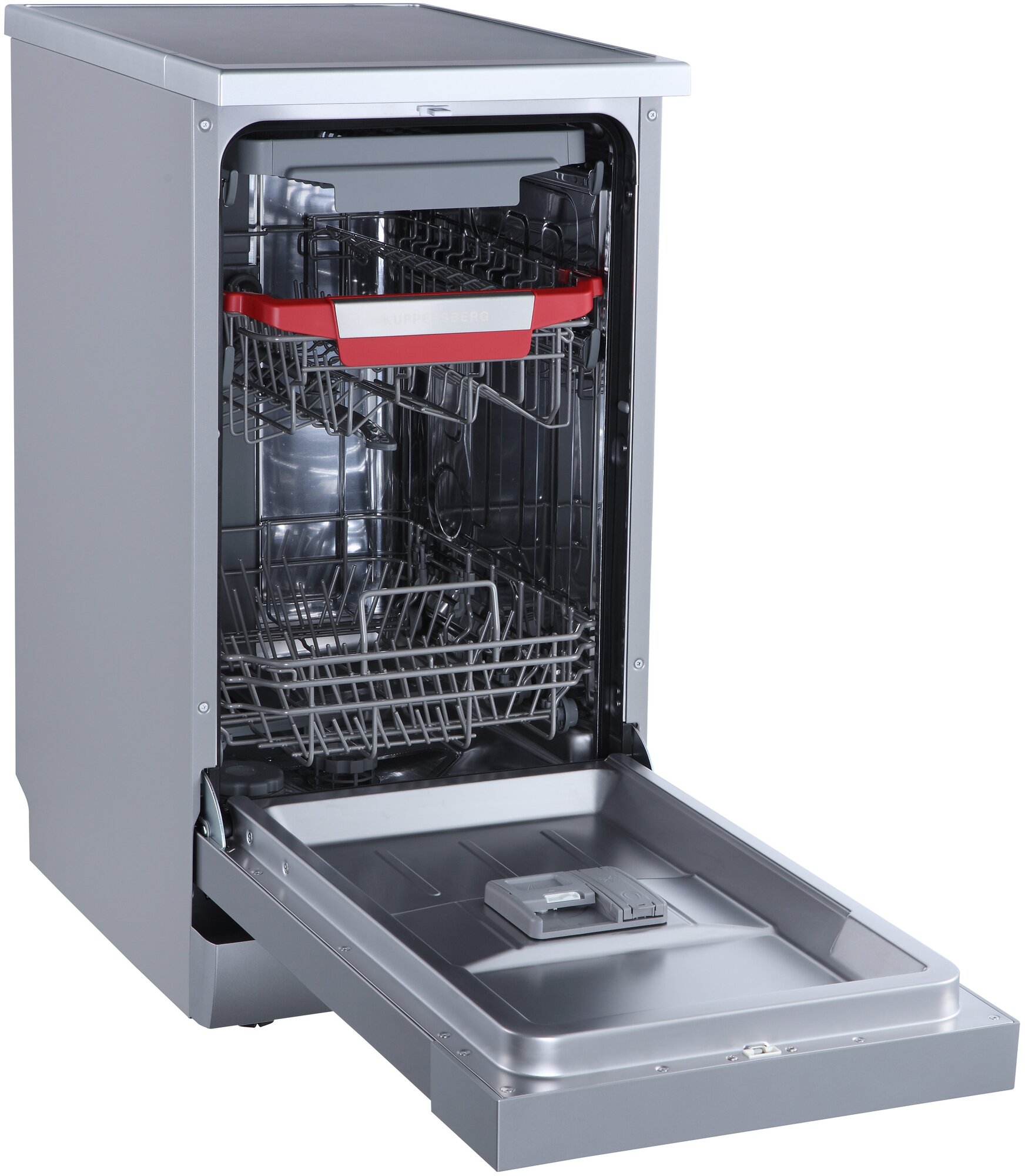 Посудомоечная машина оснащена тремя вместительными корзинами и держателем для бокалов.