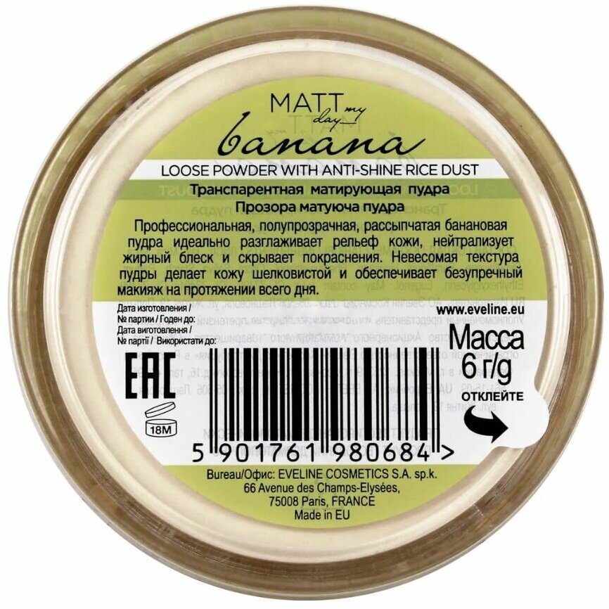 Транспарентная матирующая пудра с шелком Matt My Day Loose Powder персик 6 г Eveline Cosmetics (ЭХ99989440356)