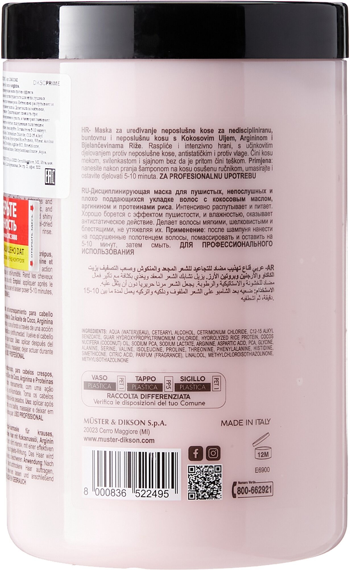 Маска с кокосовым маслом для пушистых волос Anti-frizz Discipline Mask 1000 мл Dikson (ЭХ99989439985)