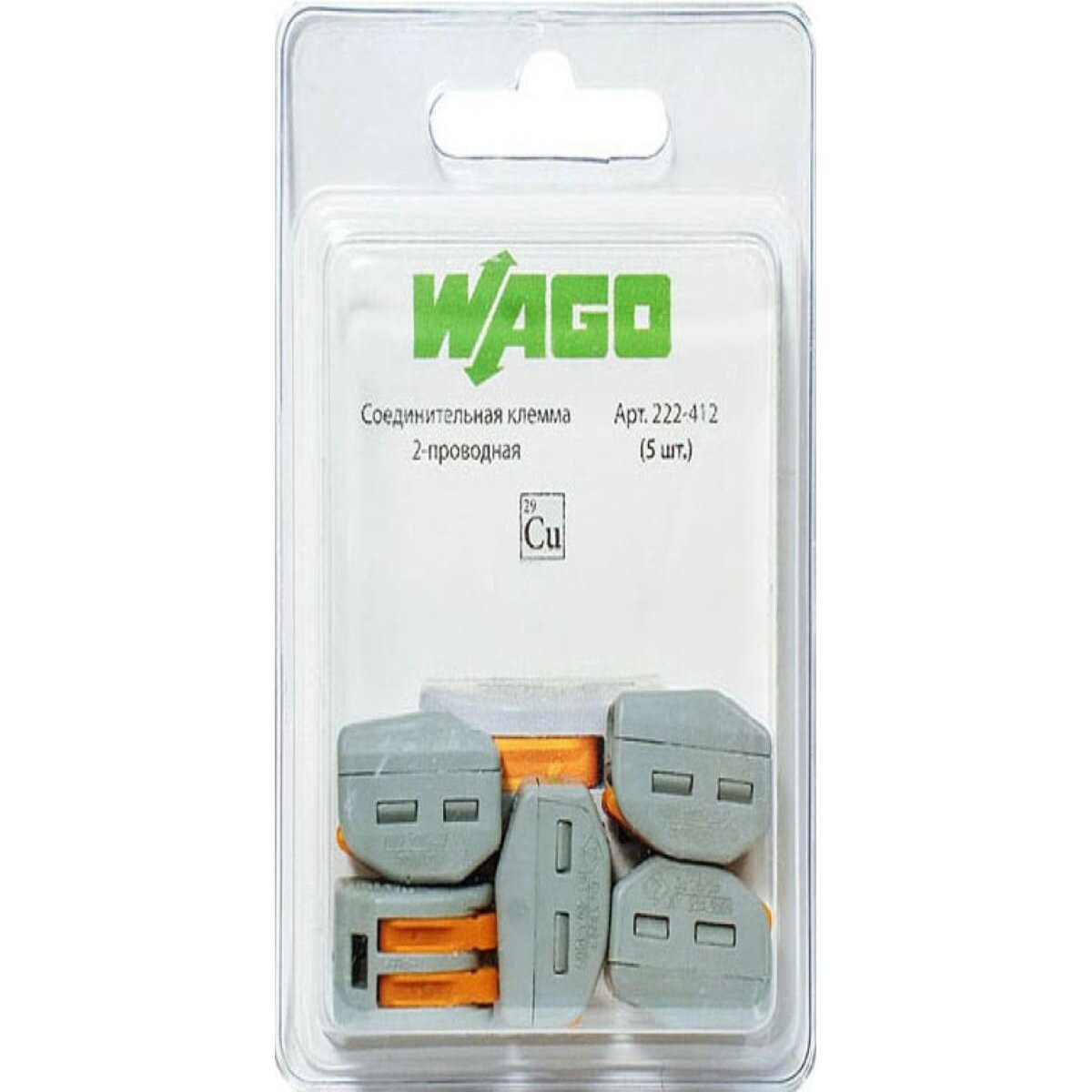 | Наименование модели | Клемма WAGO 2-х проводная 222-412 5 шт |