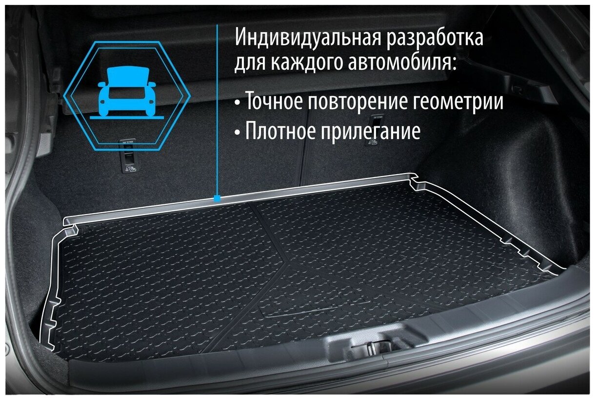 Коврик багажника позволяет надежно защитить и сохранить от грязи багажный отсек вашего автомобиля на протяжении всего срока эксплуатации, полностью повторяют геометрию багажника.