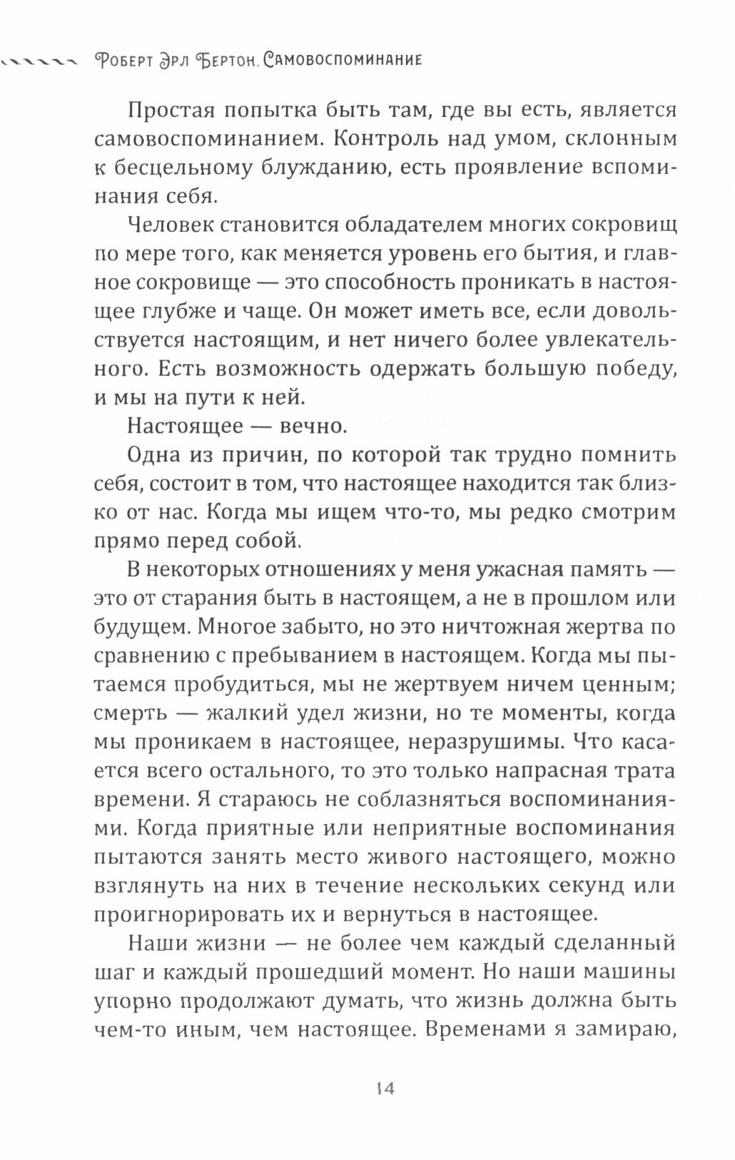 Самовоспоминание многогранно, оно включает и умение постоянно присутствовать в настоящем («помнить себя»), и разделенное внимание («вы — то, что наблюдает, а не то, что вы наблюдаете»). Схожие идеи можно найти во многих духовных традициях и религиозных учениях. Но для автора это не просто теория, а инструмент, с помощью которого каждый может «проснуться» для другой, подлинной жизни.