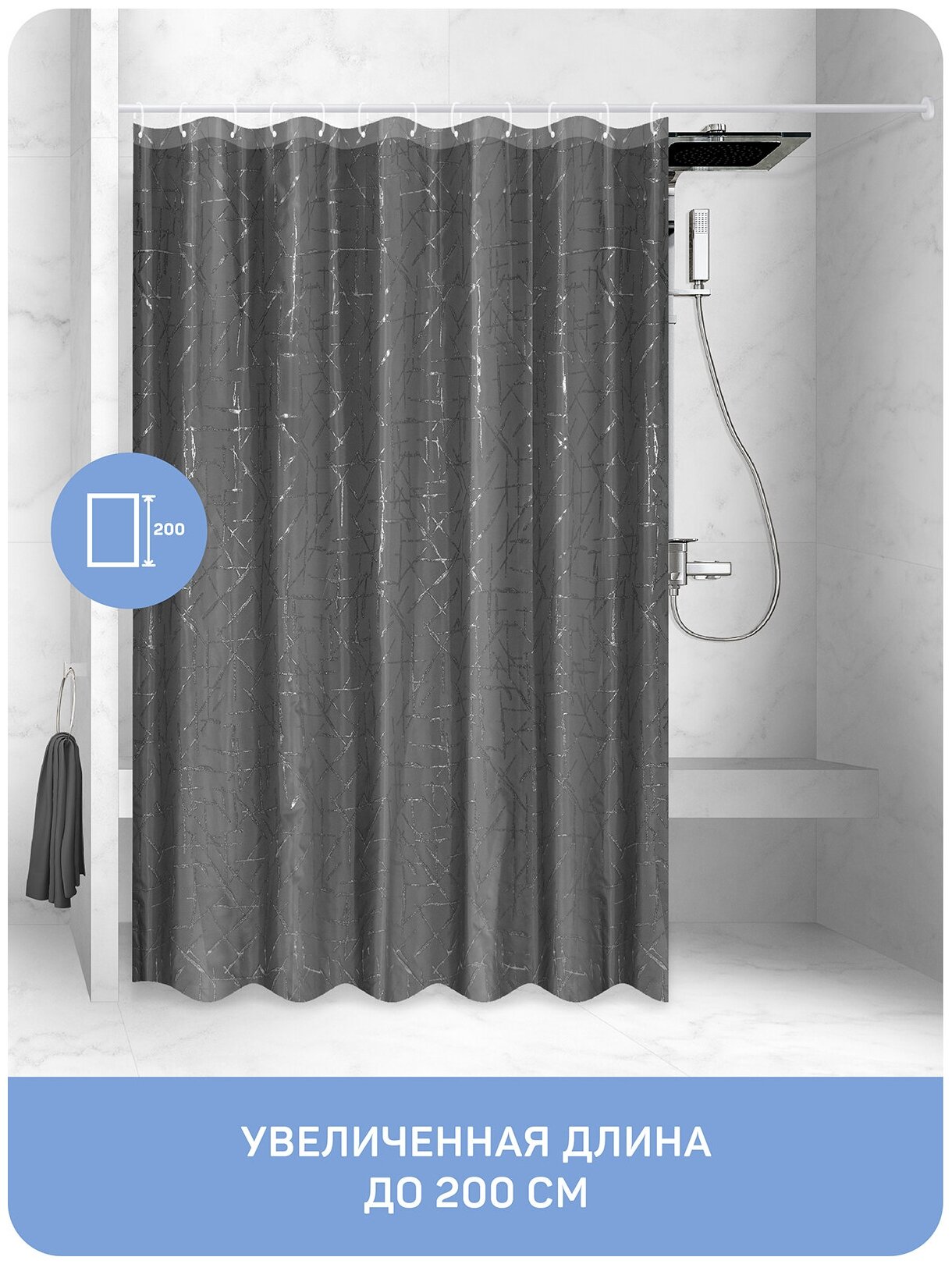 Штора для ванной с 12шт прозрачными кольцами размер 180*200см "Рэйн" Люверсы из прозрачного полипропилена. Кольца: ударопрочный полистирол Hoff (размер: 180x200 см)