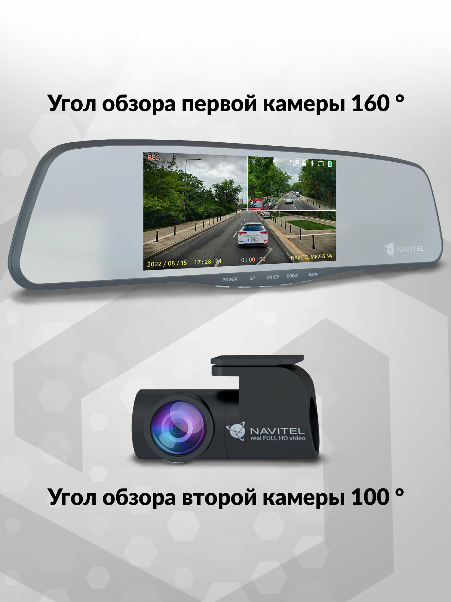 Видеорегистратор-зеркало NAVITEL MR255 NV, задняя Full HD-камера, дневная съемка