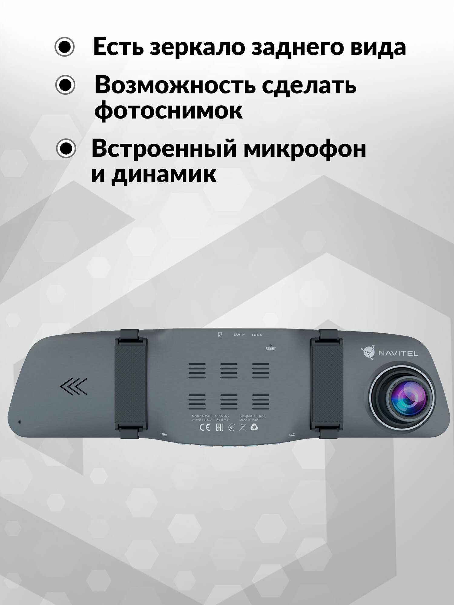 - Видеорегистратор-зеркало NAVITEL MR255 NV, фронтальная камера, ночная съемка