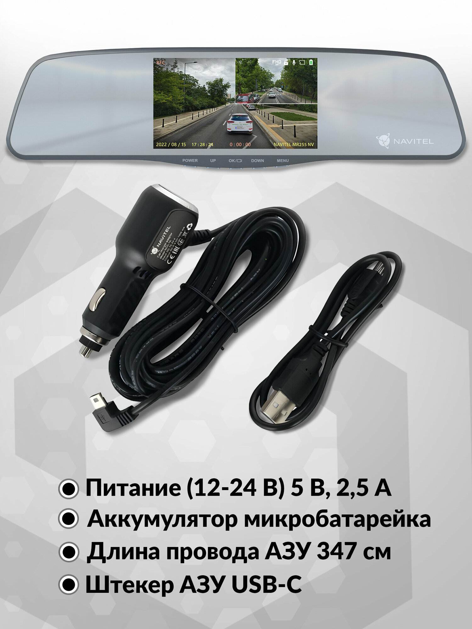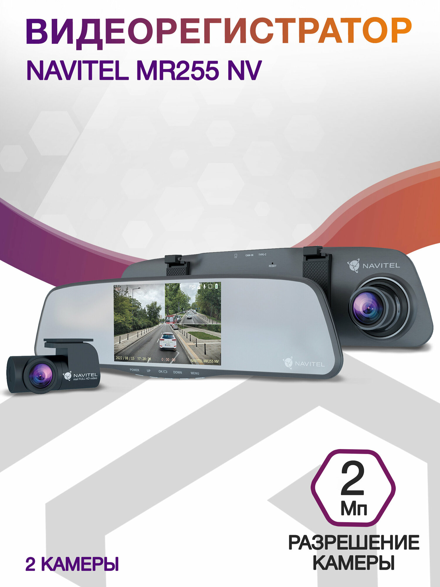 Видеорегистратор-зеркало NAVITEL MR255 NV, задняя Full HD-камера, ночная съемка
