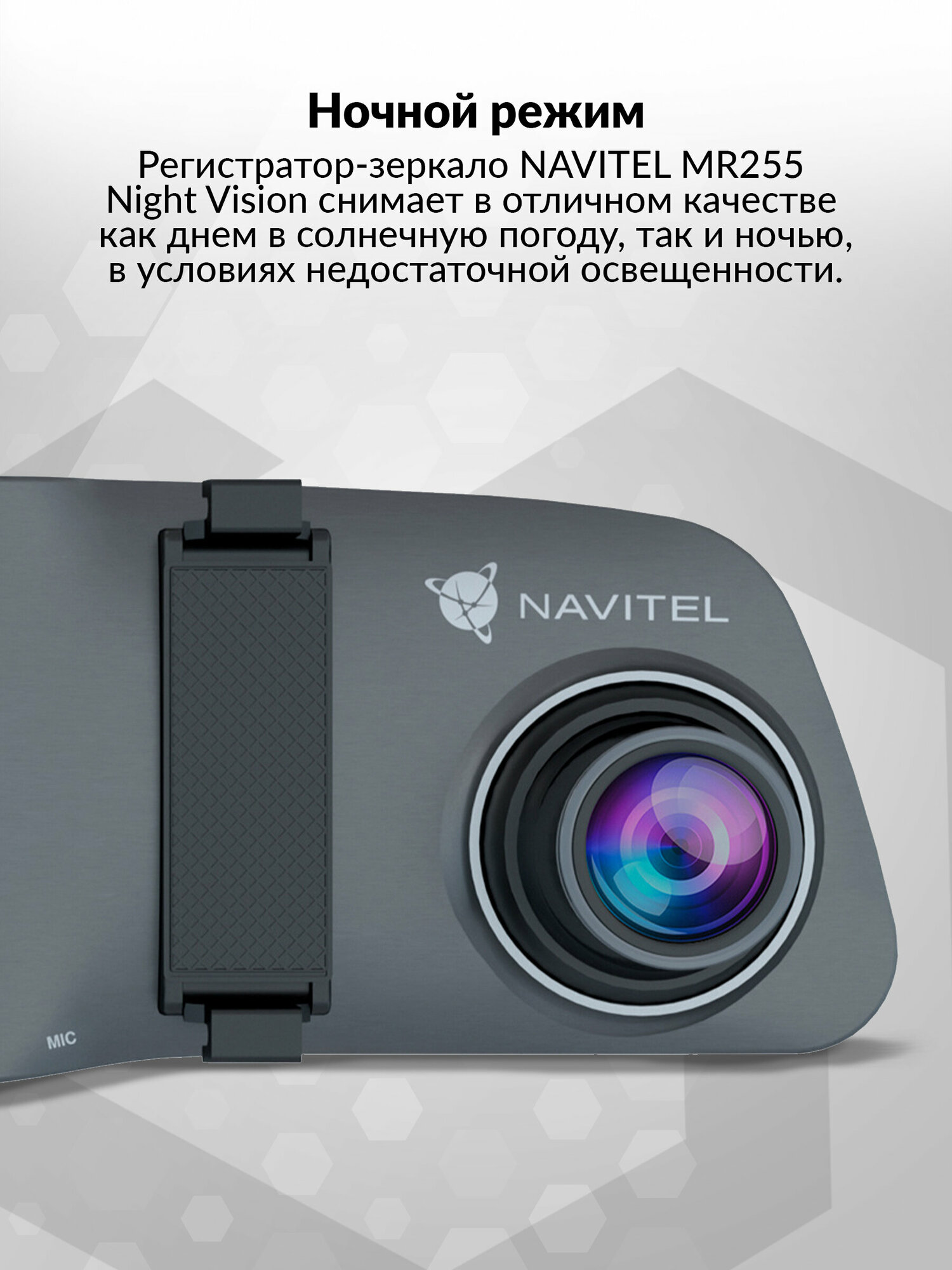 Видеорегистратор-зеркало NAVITEL MR255 NV, фронтальная камера, ночная съемка
