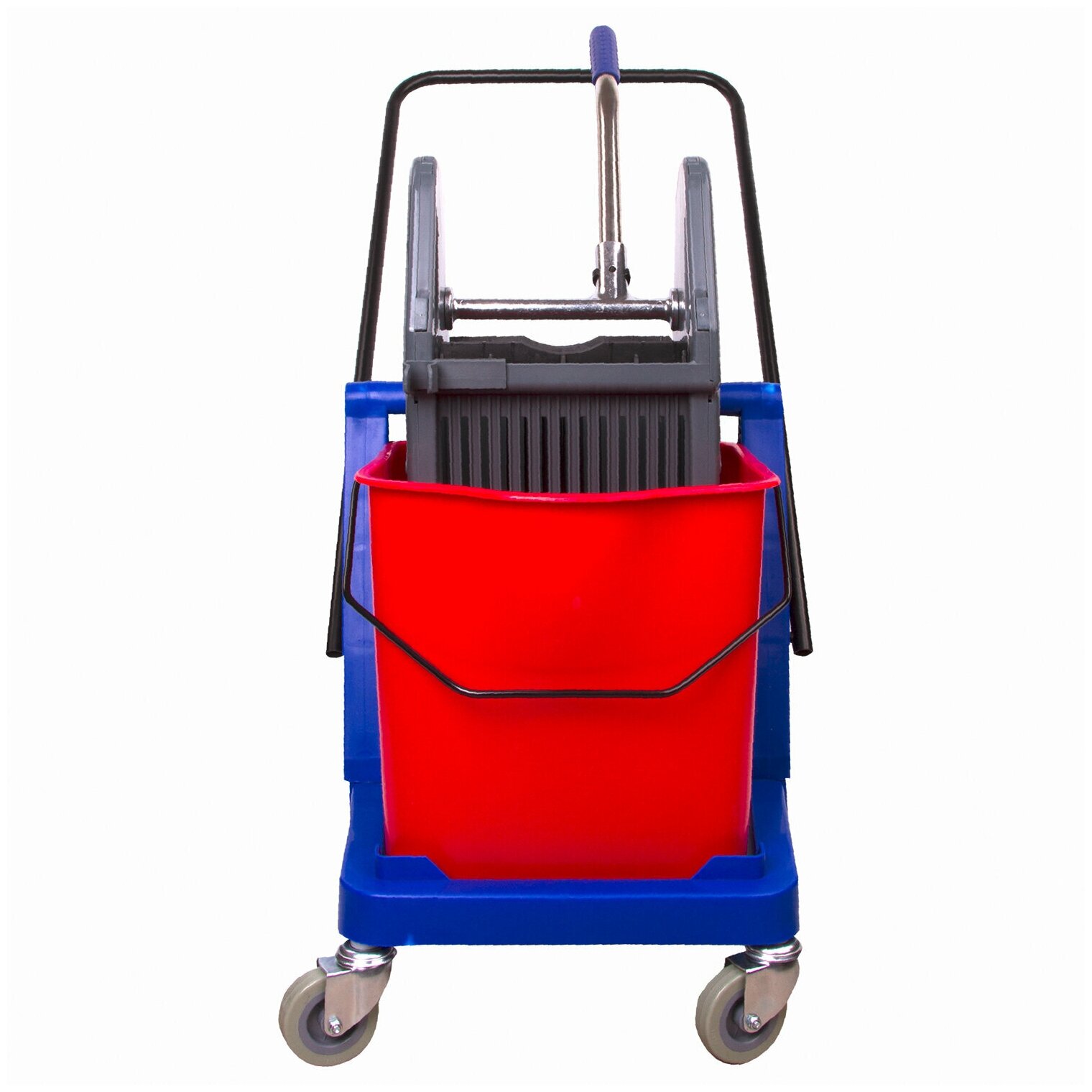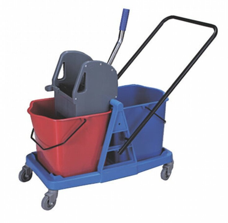 Уборочная тележка BRABIX предназначена для проведения влажной уборки в офисных и производственных помещениях с большой площадью. Представляет собой пластиковый каркас с установленными на него механическим отжимом для петельных тряпок и МОПов и 2 съемными ведрами по 23 л (рекомендованный объем каждого ведра - 20 л). База и инвентарь изготовлена из качественного пластика. Тележка выполнена в трехцветном исполнении: красный, синий и серый. Колеса позволяют перемещаться в произвольном направлении. Габариты - 92х44х85 см. Вес - 9 кг. Комплектация: отжим, 2 лотка, транспортная ручка, каркас.