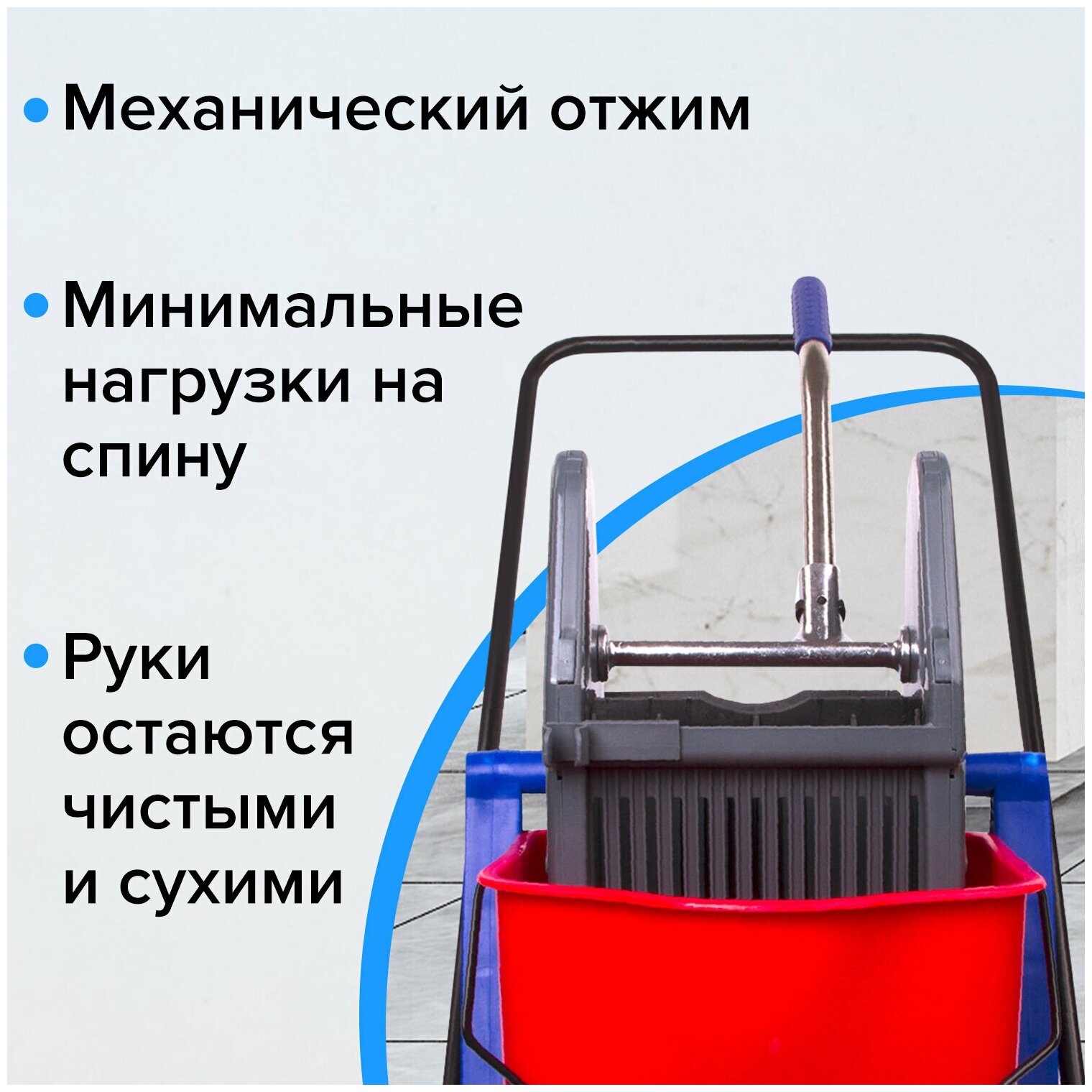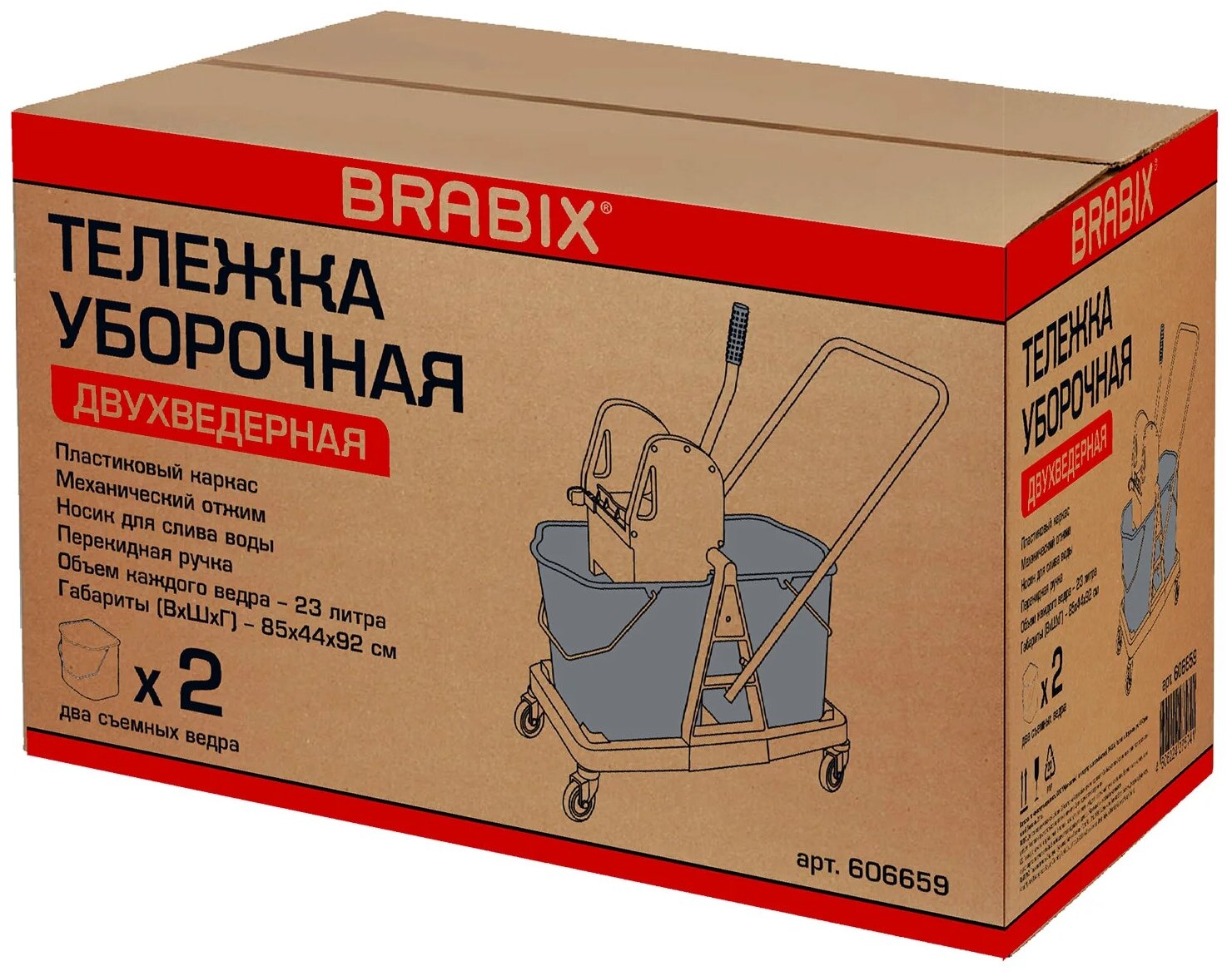 Тележка уборочная BRABIX 2 съемных ведра 23 л механический отжим пластиковый каркас 606659