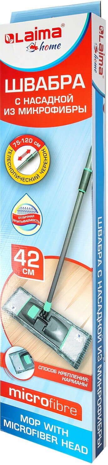 Швабра с насадкой 42см телескопический черенок 75-120см микрофибра карманы Laima Home 606796 HY0128