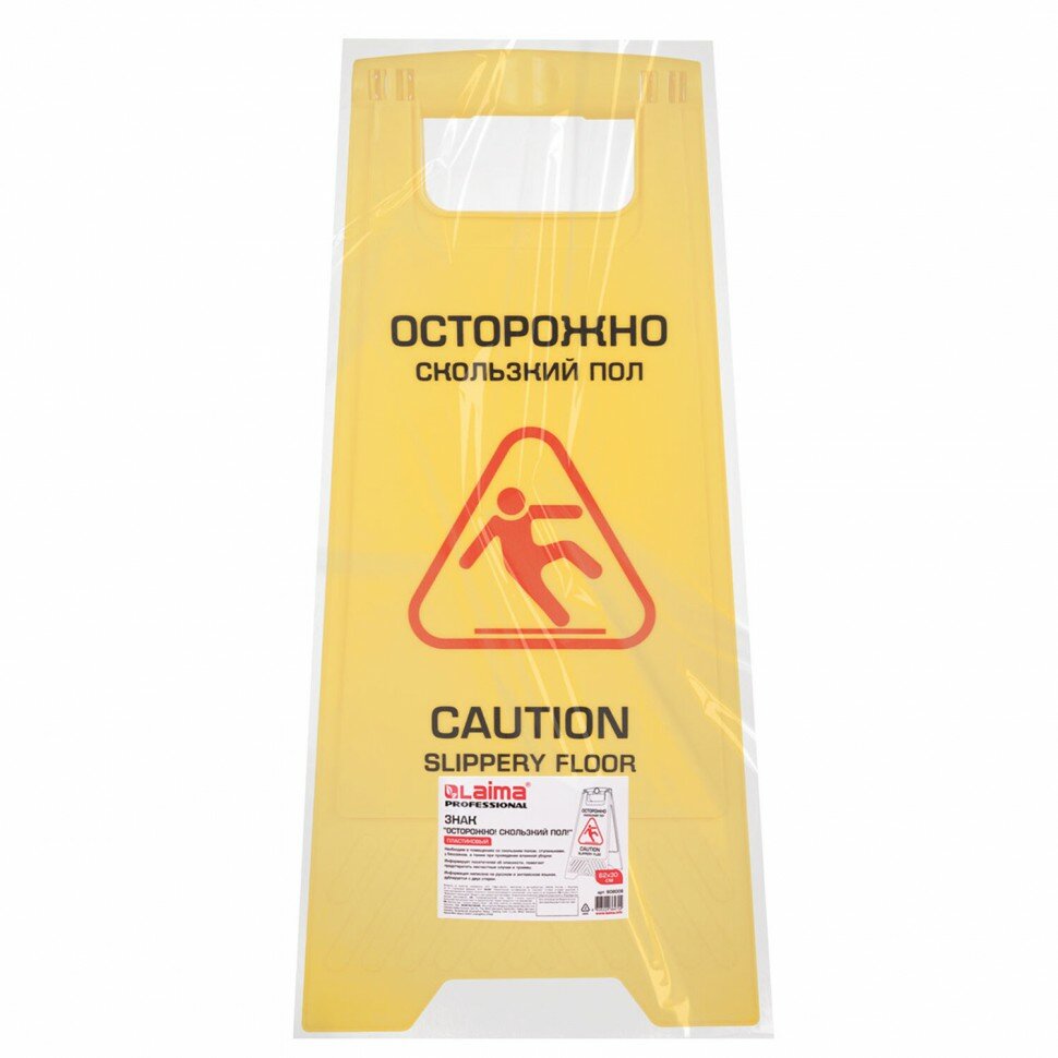 Знак предупреждающий "Осторожно! Скользкий пол!" пластиковый 62х30 см LAIMA PROFESSIONAL 608006 Осторожно. Скользкий пол/ Professional