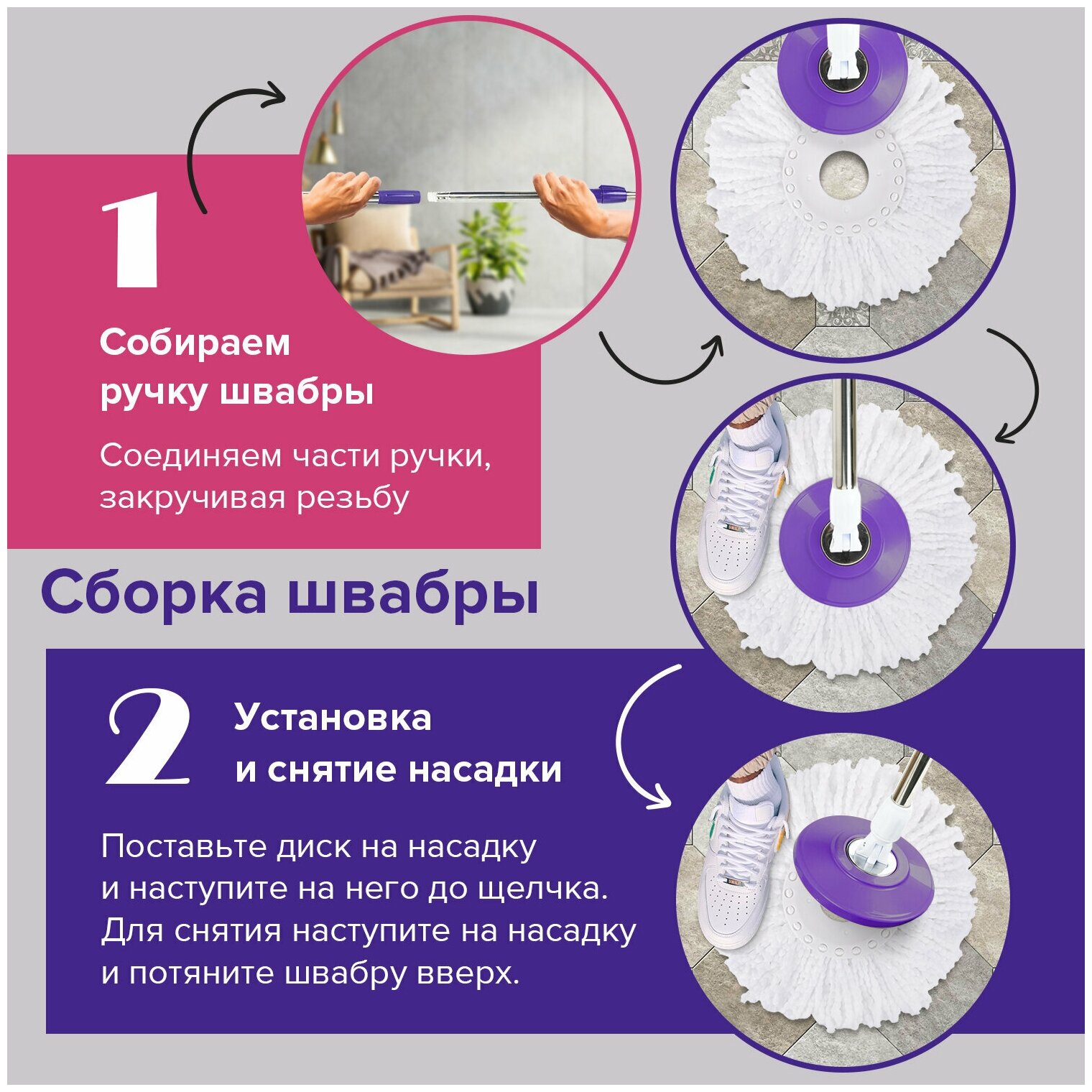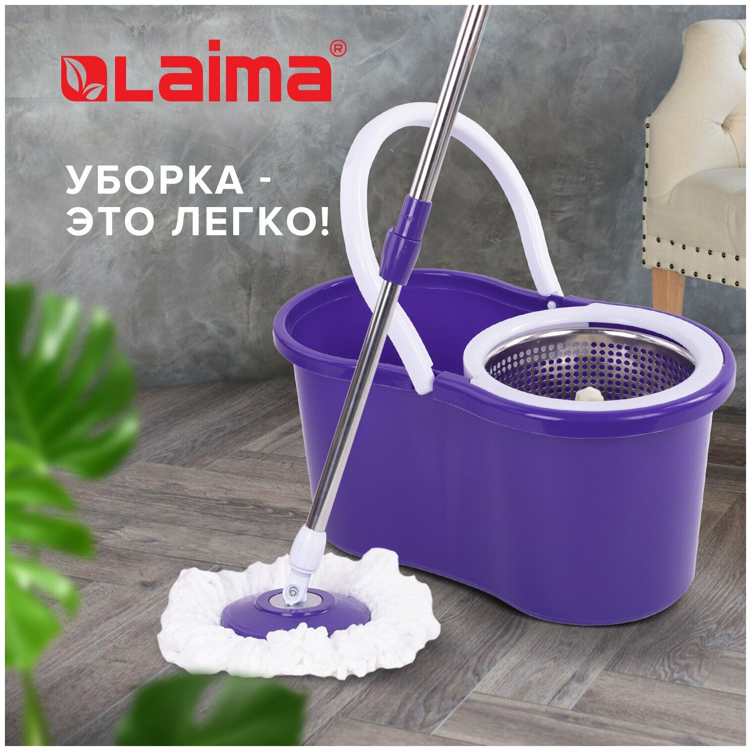 Швабра с отжимом и ведром 7 л/5 л LAIMA TONE MOP две насадки в комплекте фиолетовый 607485