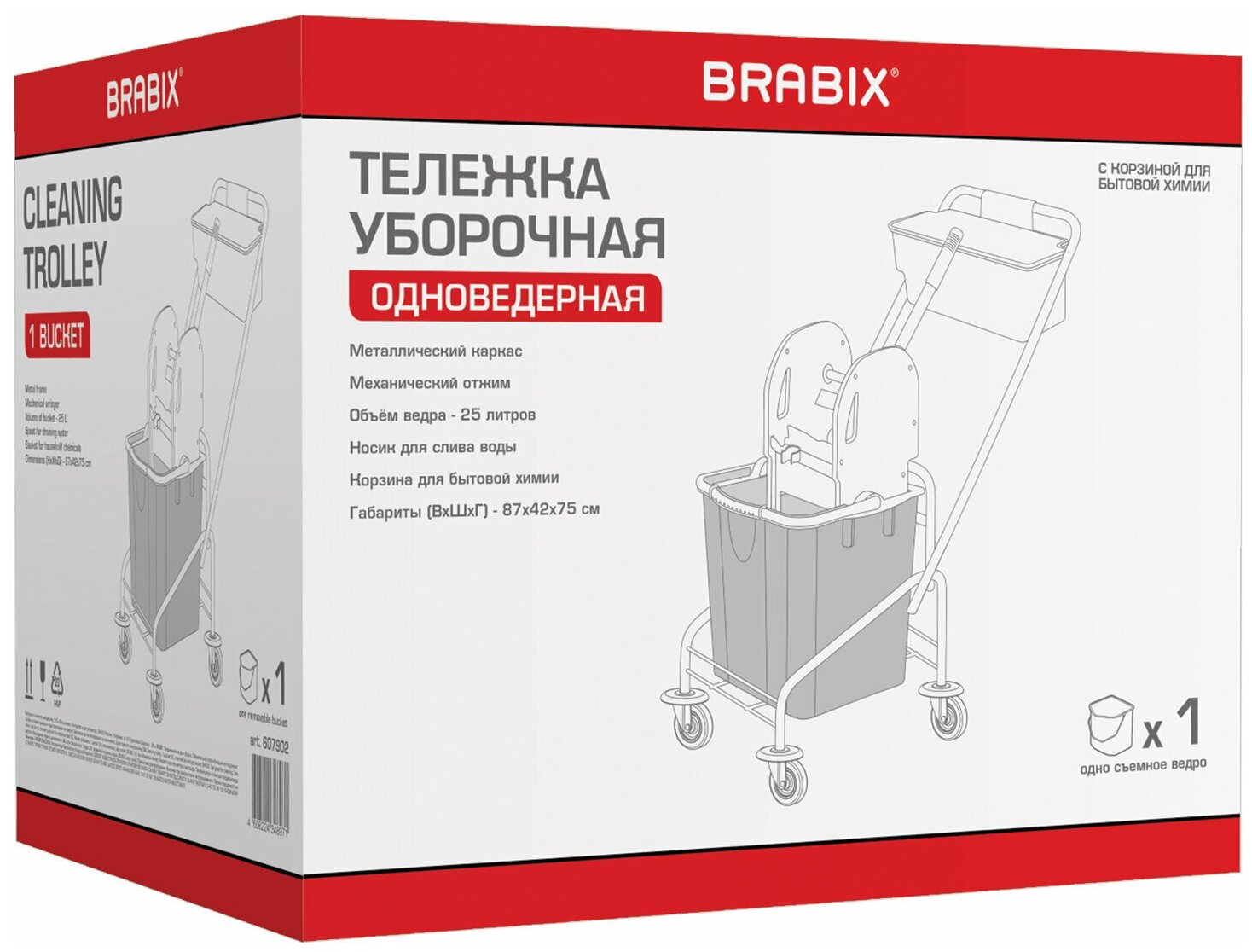 На сегодняшний день товар «Тележка уборочная 1 съемное ведро 25 л механический отжим корзина BRABIX Турция 607902» можно купить с кешбеком в 1 магазине: Яндекс.Маркет