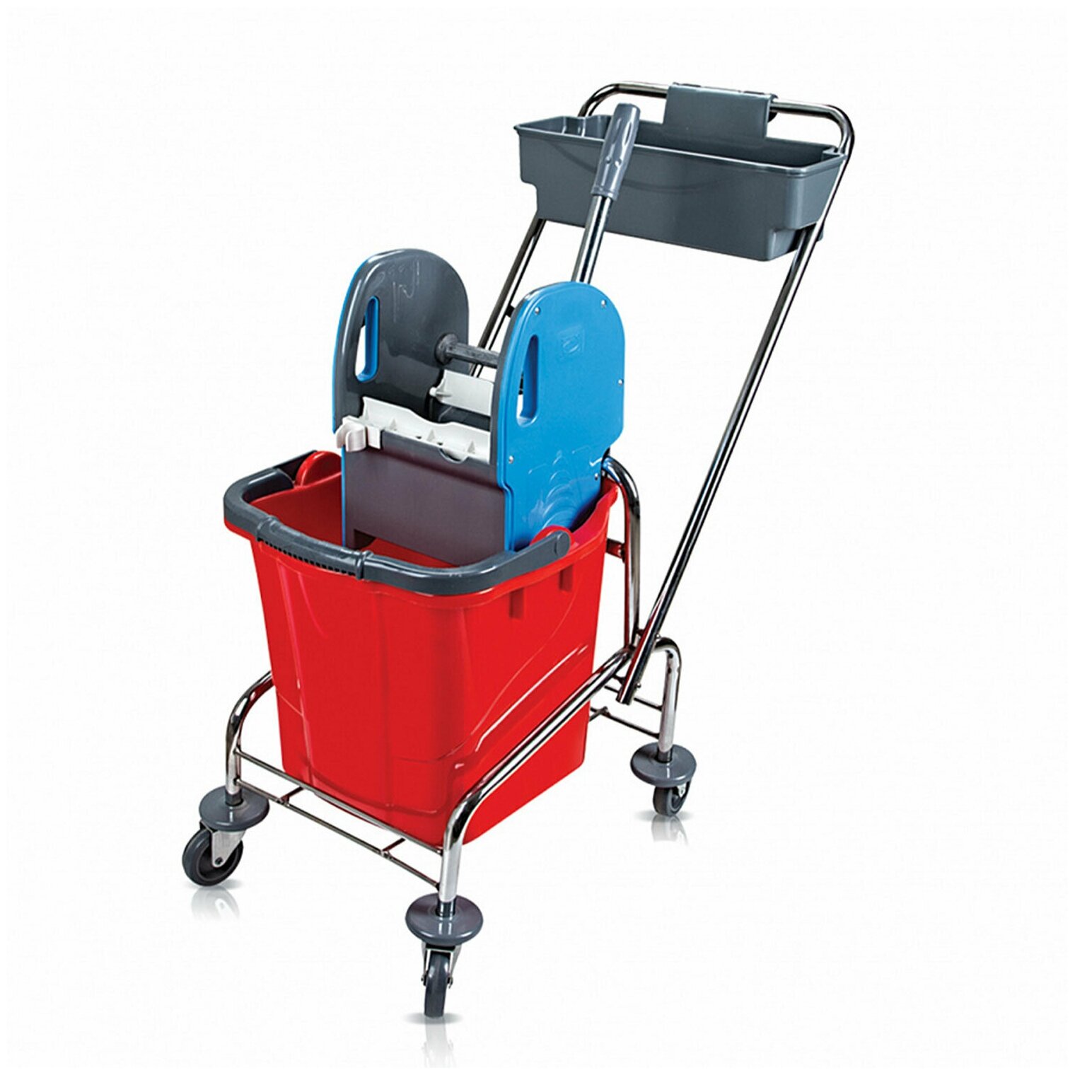 Уборочная тележка BRABIX предназначена для проведения влажной уборки в офисных и производственных помещениях с большой площадью. Представляет собой металлическую платформу на колесах с ведром объемом 25 л, механическим отжимом и корзинкой для бытовой химии на ручке. Корпус платформы изготовлен из хромированного металла, а инвентарь из пластика. Тележка выполнена в двухцветном исполнении: синий и серый. Колеса позволяют перемещаться в произвольном направлении. Внимание! Товар представлен в нескольких видах без возможности выбора. Цена указана за 1 набор.