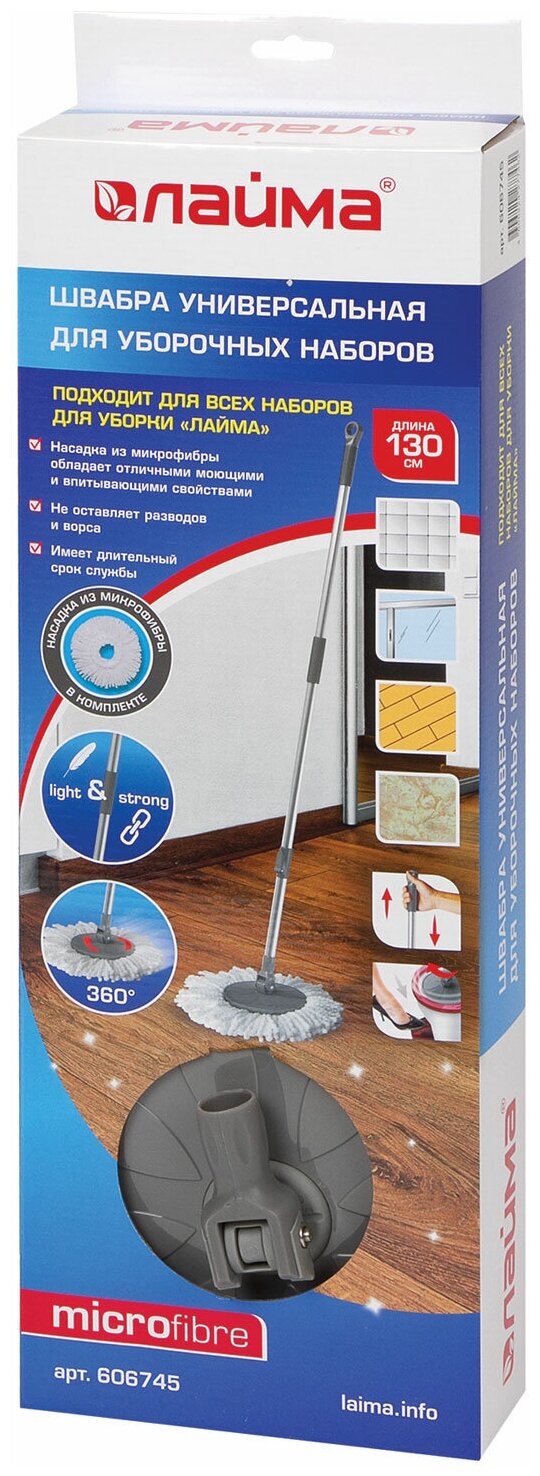 Сервис сравнения цен СкидкаГИД предлагает сравнить цены на товар «Швабра для наборов для уборки с круглой насадкой из микрофибры черенок 130 см LAIMA 606745»