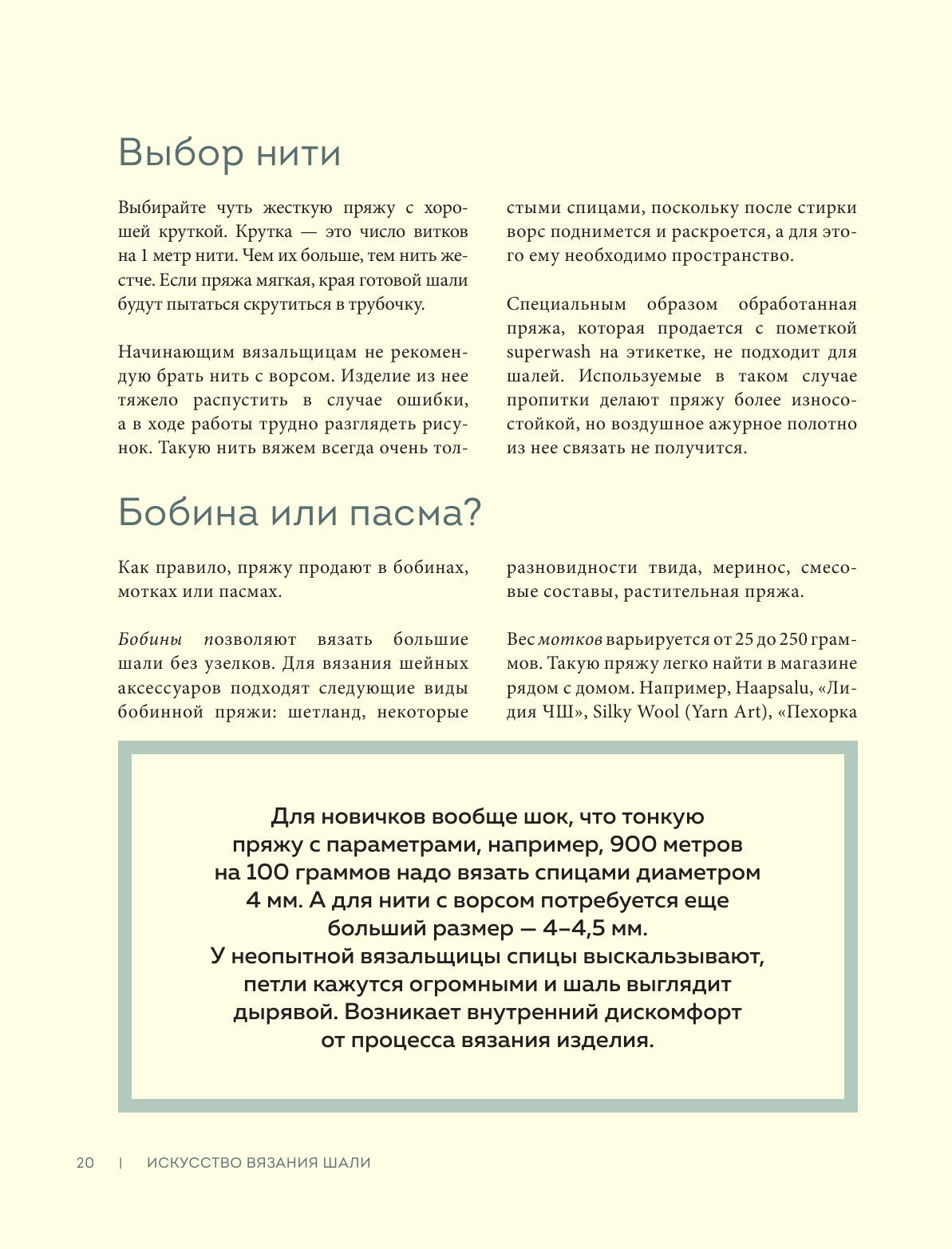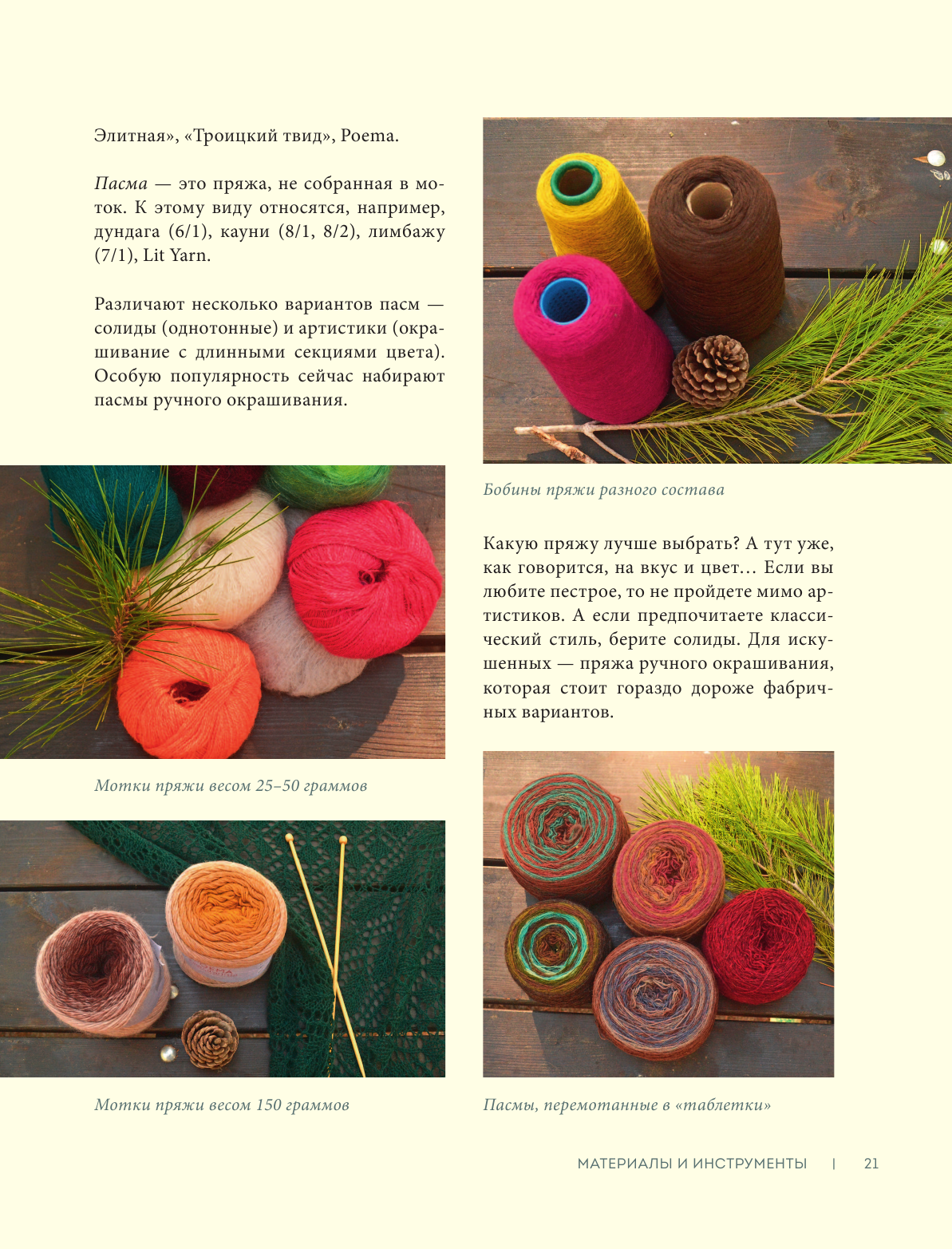 Безумно классная енига про вязание шалей. Автор подробно рассказывает о разных техниках и приводит подробные инструкции по вязке. При этом все сопровождается красивыми профессиональными фотографиями, которые мотивируют начать вязать свои воздушные шали.