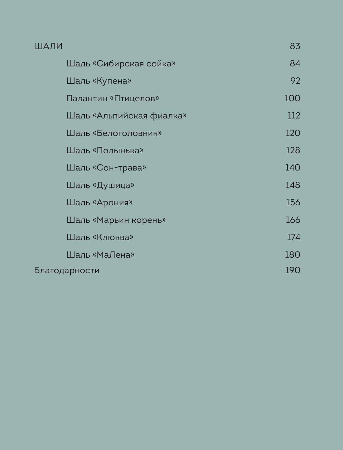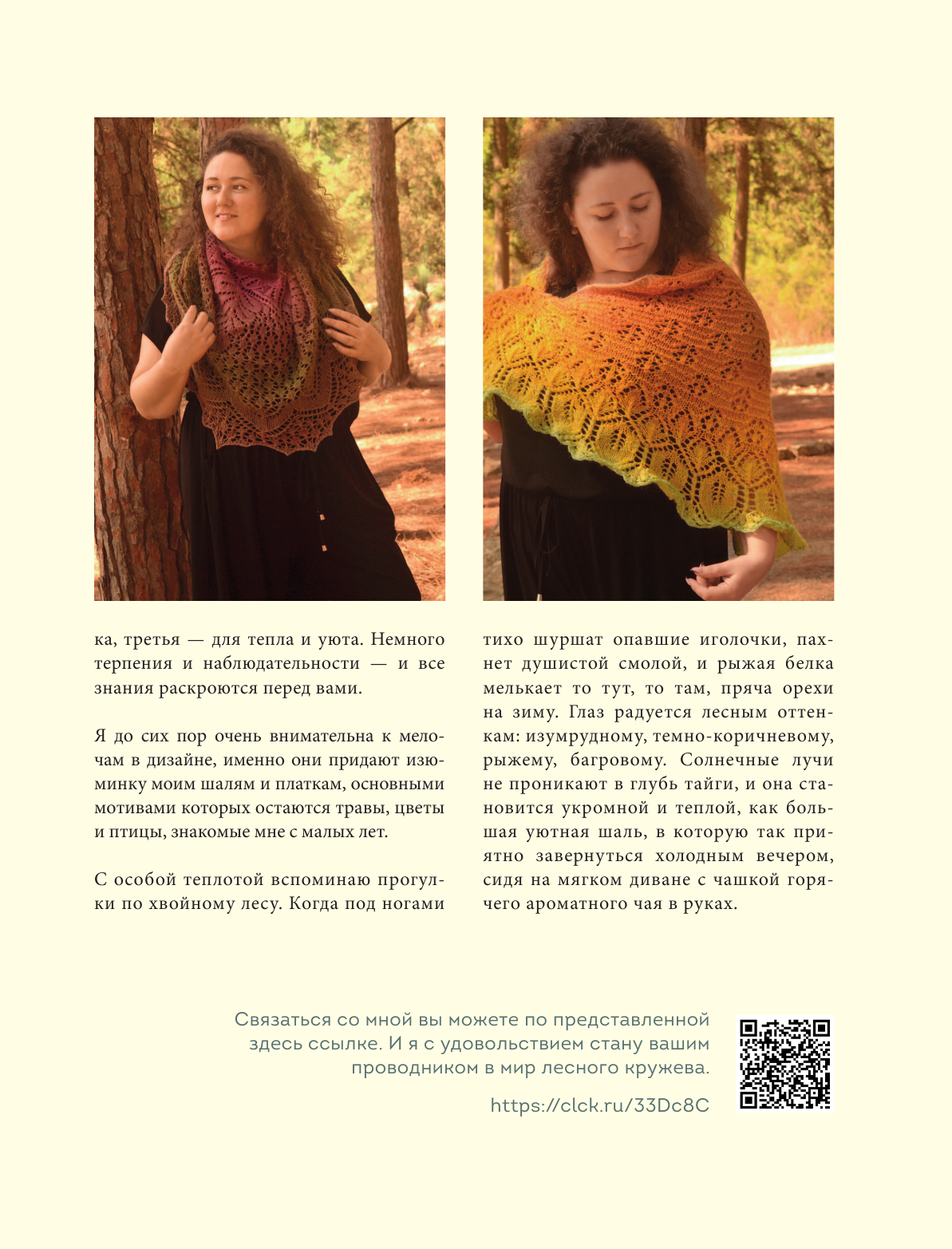 12 роскошных авторских шалей самых разных форм и моделей, связанных спицами с огромной любовью к сибирской природе. Формы шалей разнообразны: классическая треугольная, полукруглая, с горизонтальной каймой, с нупами, с бисером... Если начать от простого к сложному, с помощью книги вы станете асом и виртуозом. Независимо от вашего пола, возраста или навыков, каждый сможет связать свою собственную уникальную шаль!