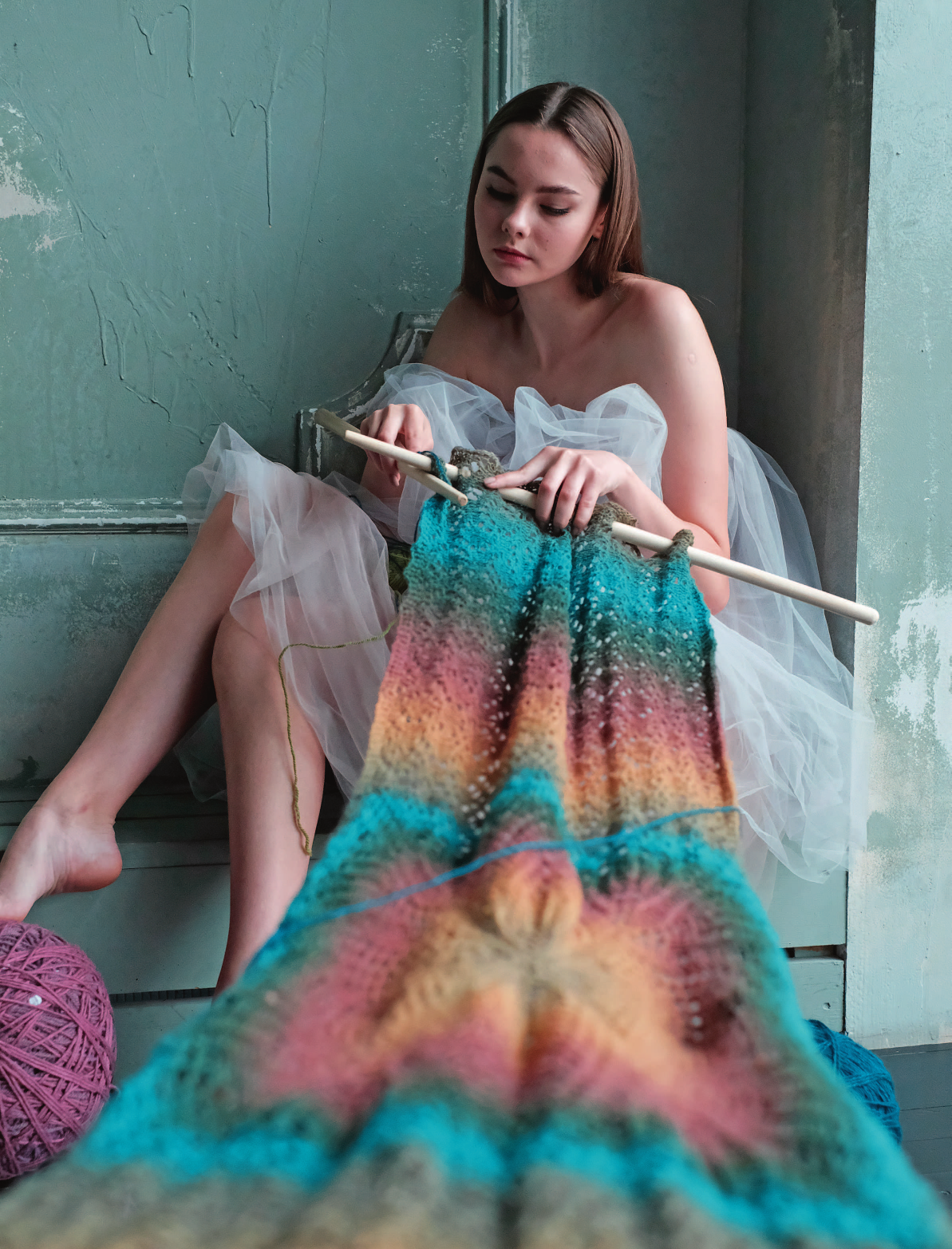 Круто, что автор так же мастерски разрушает миф о том, что шали - атрибут бабушек. Это далеко не так. Шаль может быть очень крутым и стильным аксессуаром, что и доказывают фотографии готовых изделий. -